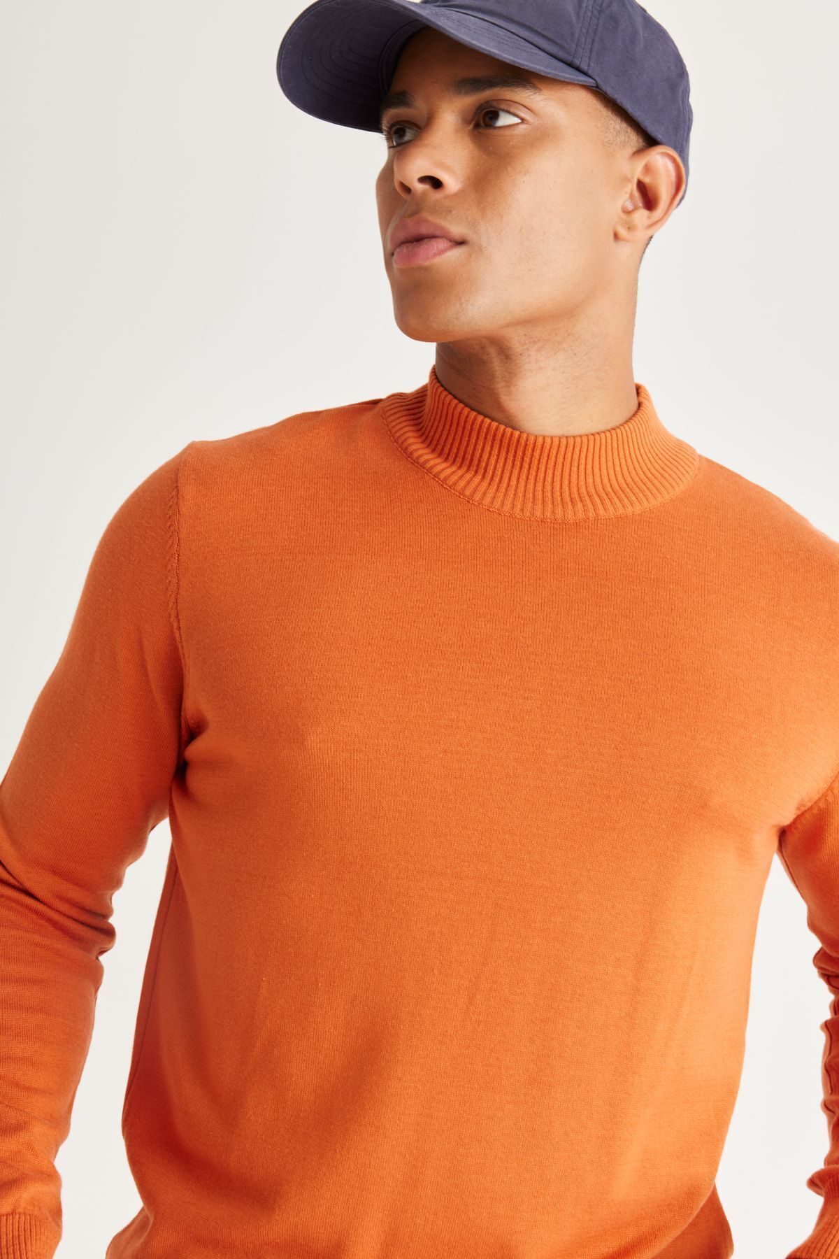 ژاکت بافتنی نخی یقه اسکی مردانه طرح آجری قرمز استاندارد سایز معمولی
