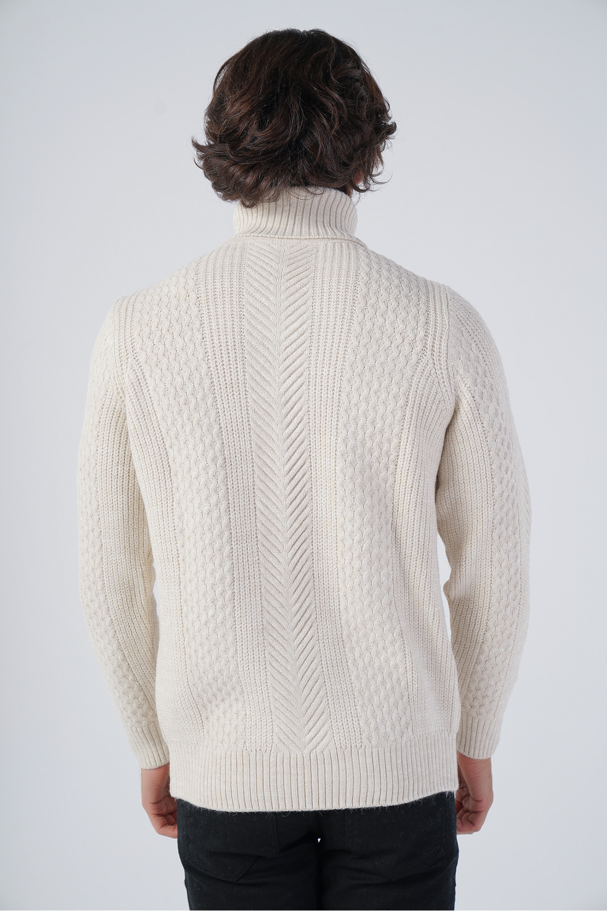 ژاکت پشمی بافتنی یقه اسکی مردانه بژ