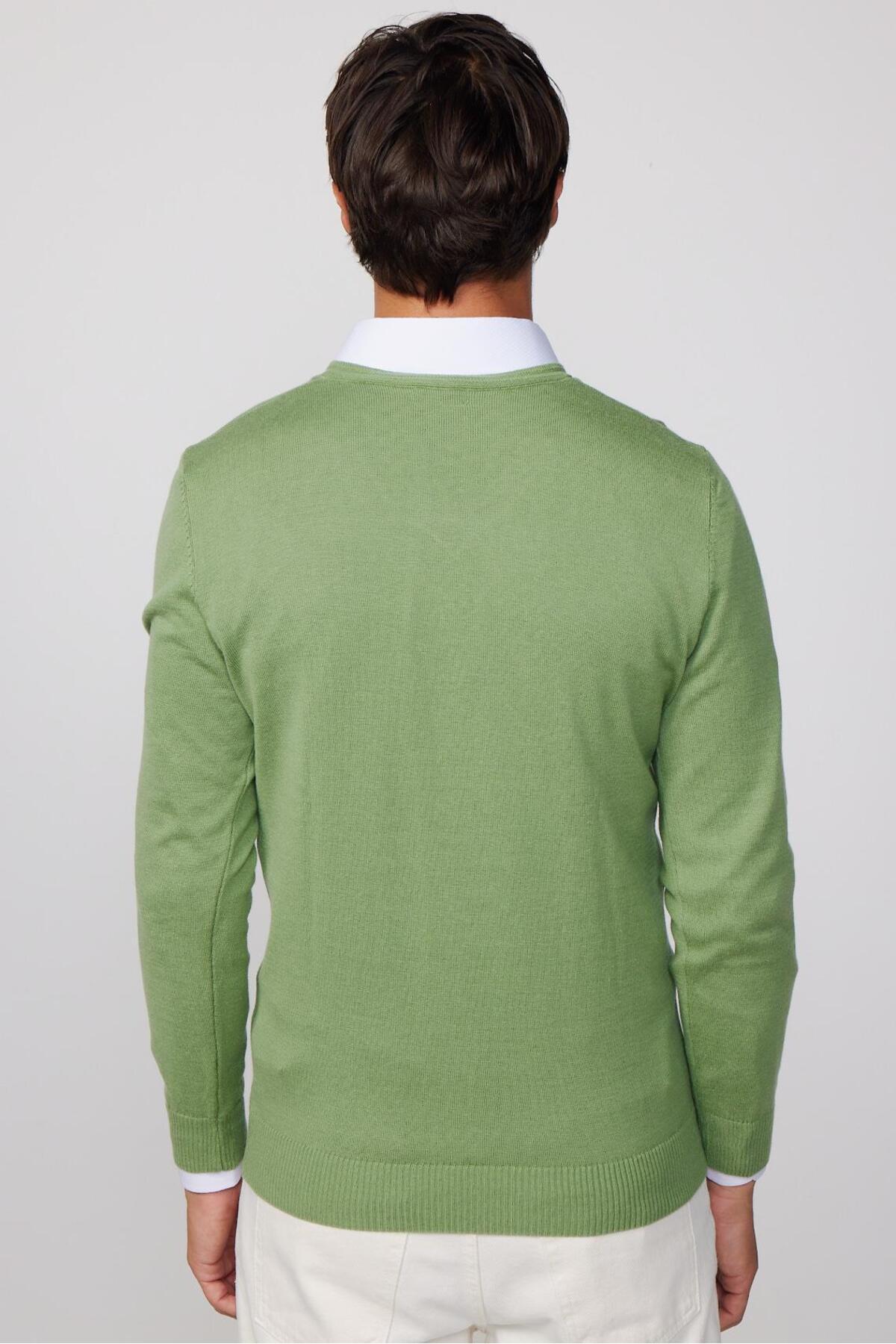ژاکت بافتنی نخی سبز مردانه یقه هفت برش معمولی سایز استاندارد