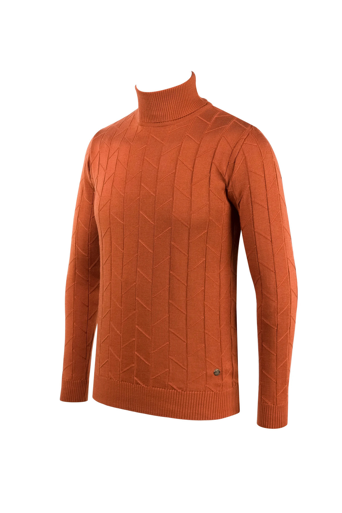 ژاکت بافتنی مردانه یقه اسکی کامل با طرح قرمز آجری، سایز معمولی – 4832E