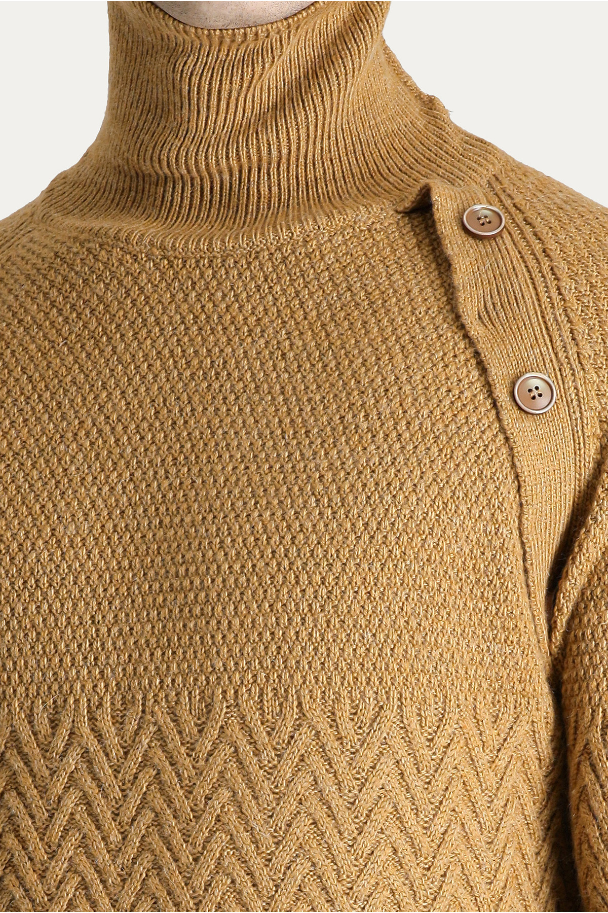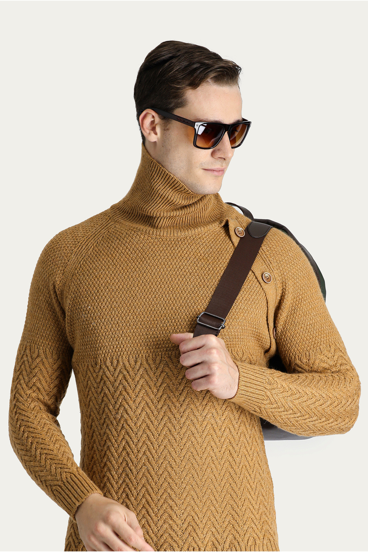 ژاکت بافتنی پشمی طرح‌دار یقه اسکی اسلیم فیت باریک
