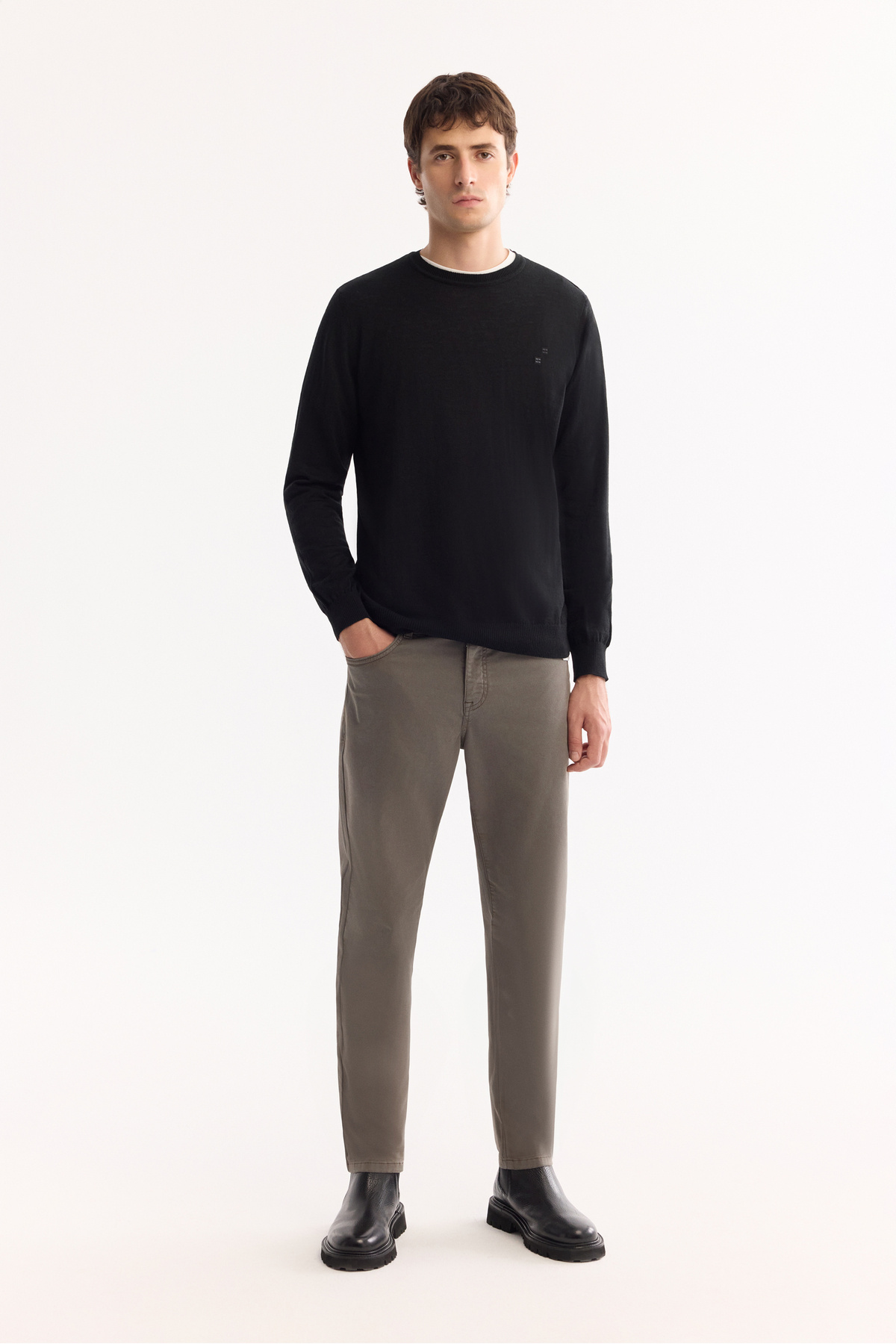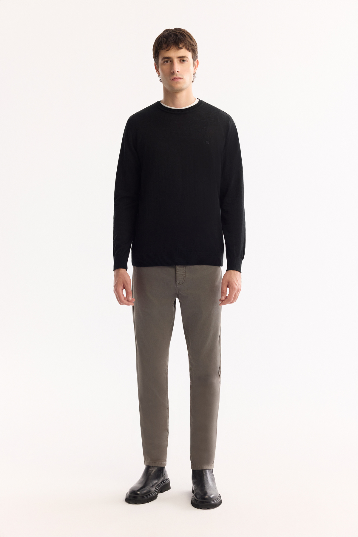 ژاکت بافتنی پشمی مردانه یقه گرد مشکی، طرح معمولی B005013