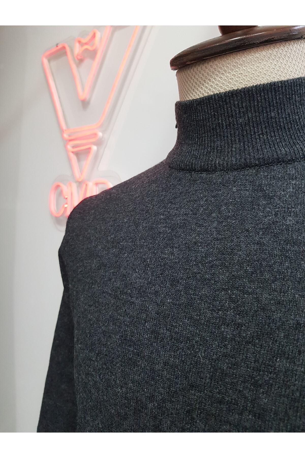 ژاکت نخی راحت به سبک دودی خاکستری نیم یقه اسکی