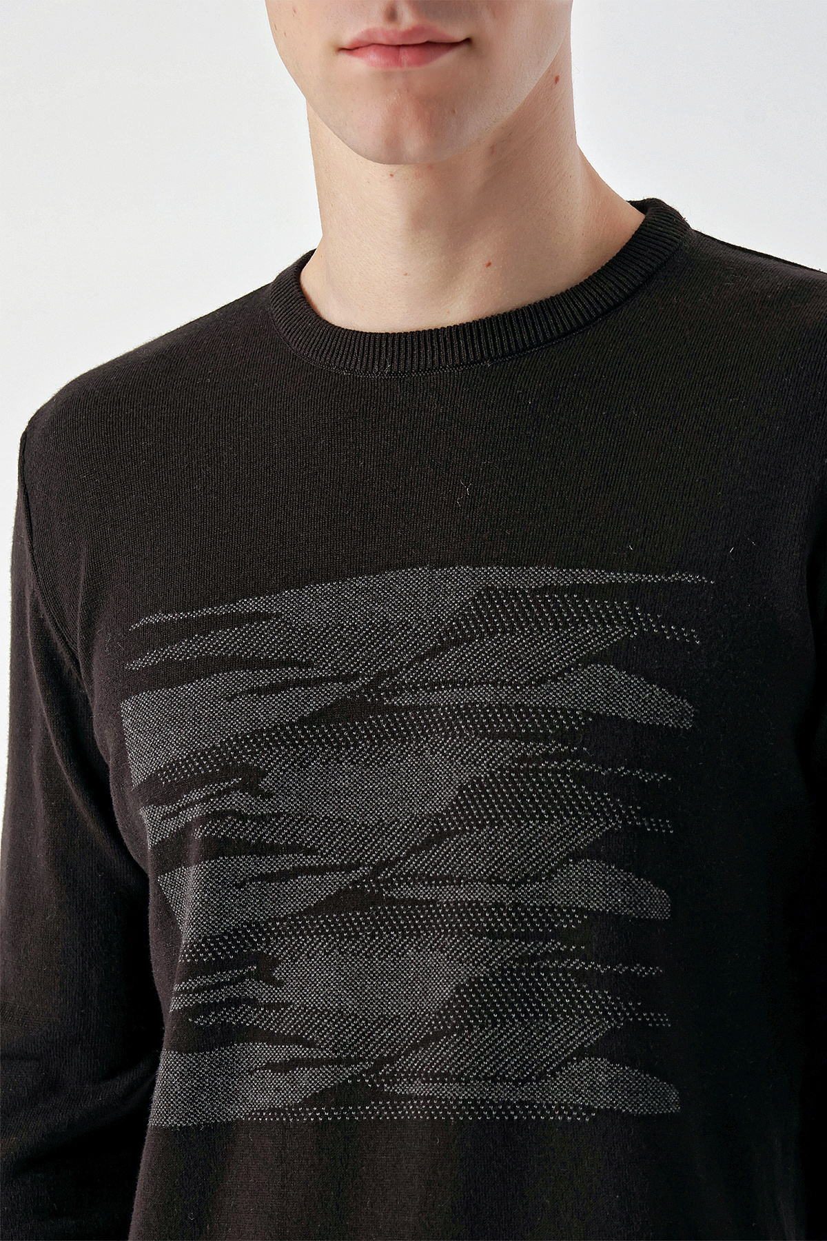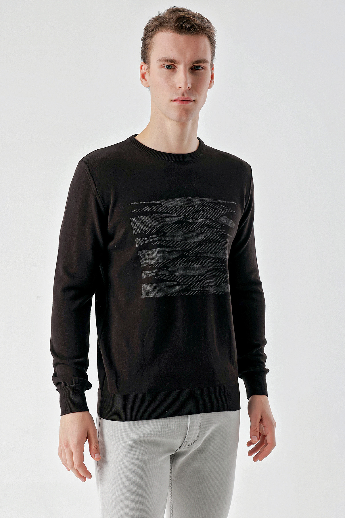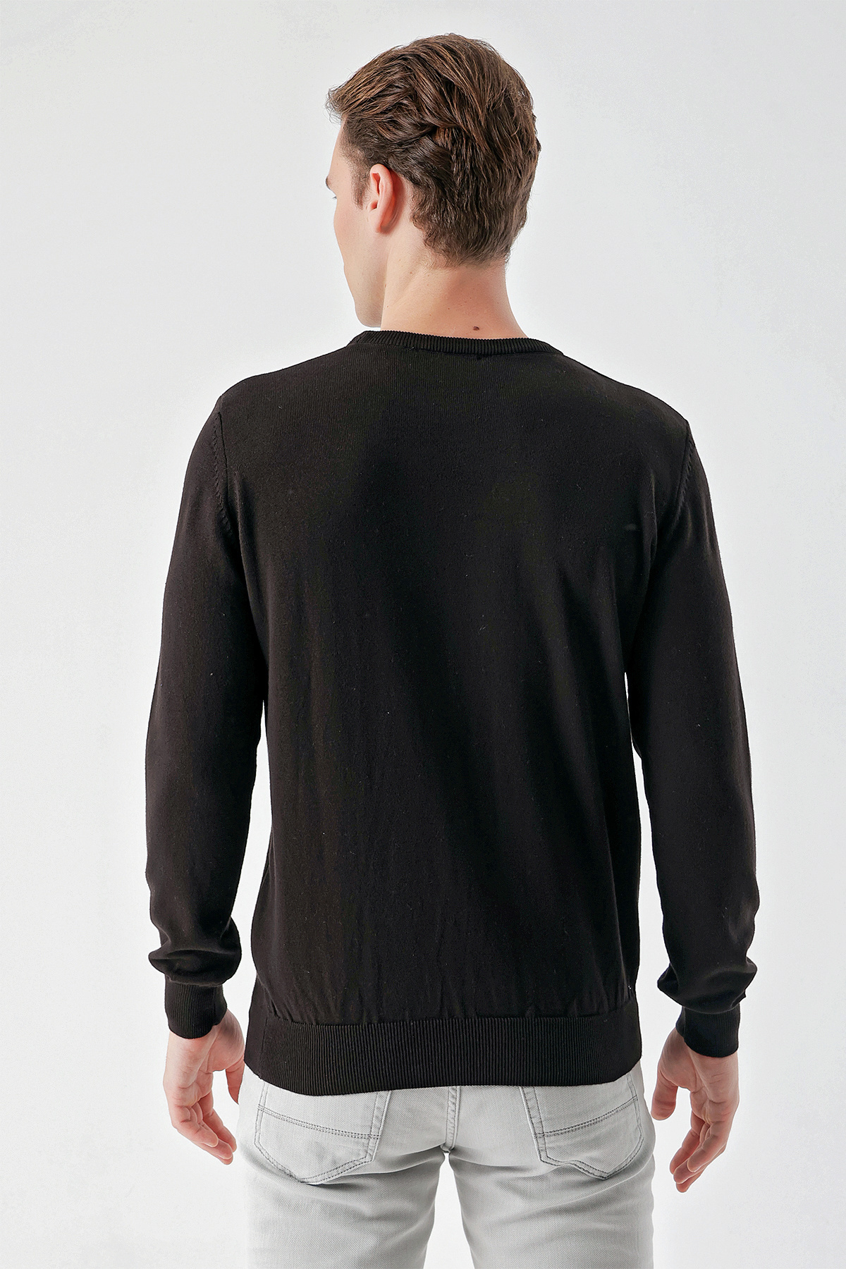 ژاکت بافتنی مردانه مشکی، مد روز، یقه گرد، فیت داینامیک، برش آرام