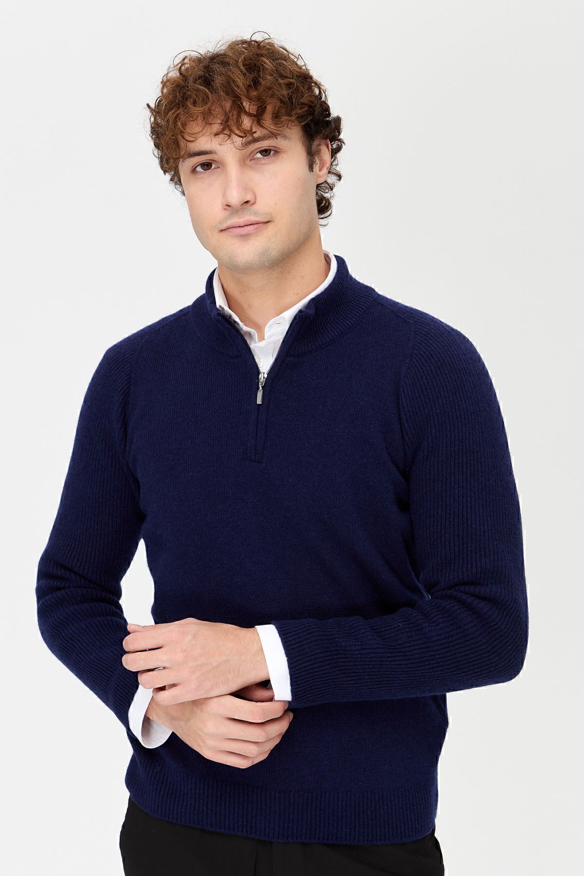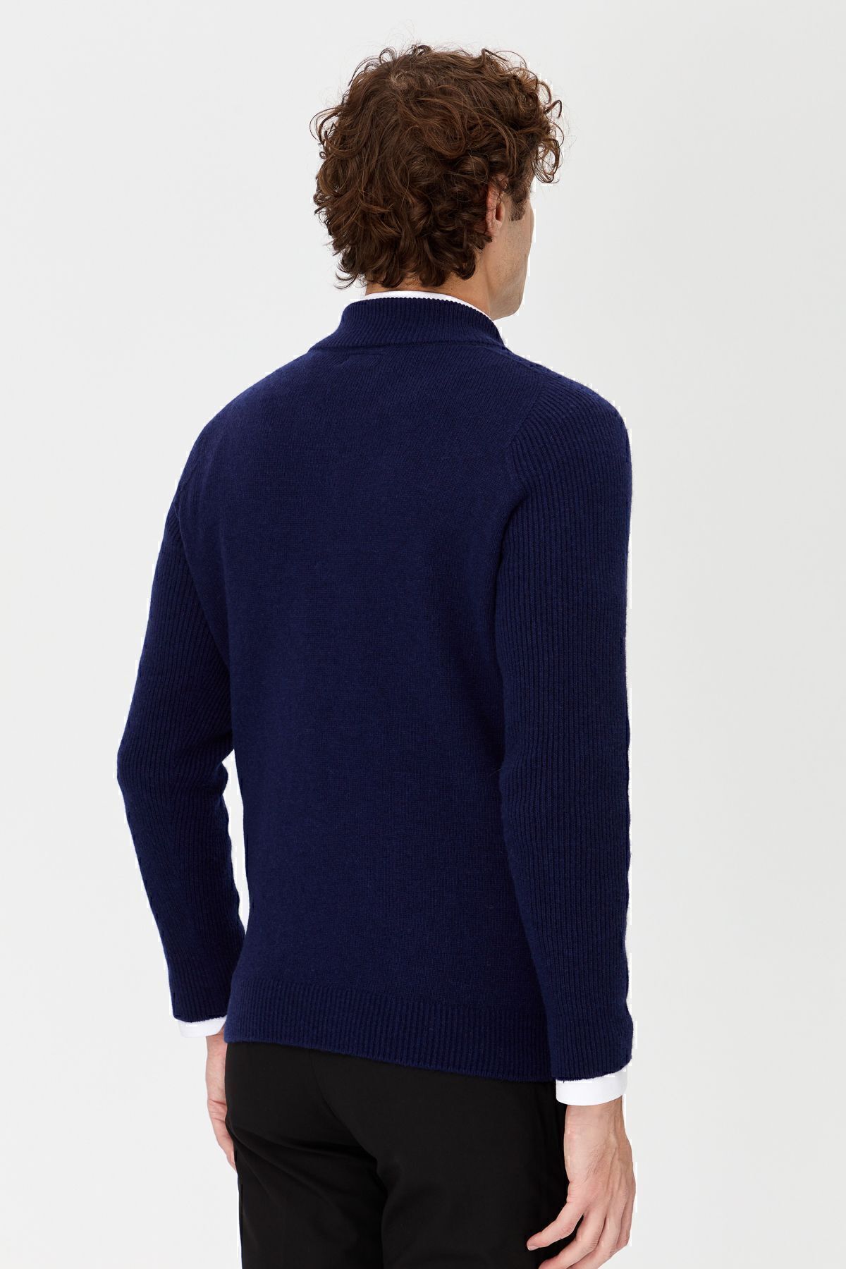 ژاکت پشمی یقه اسکی مردانه با یقه زیپ دار، آبی نفتی Y.A.
