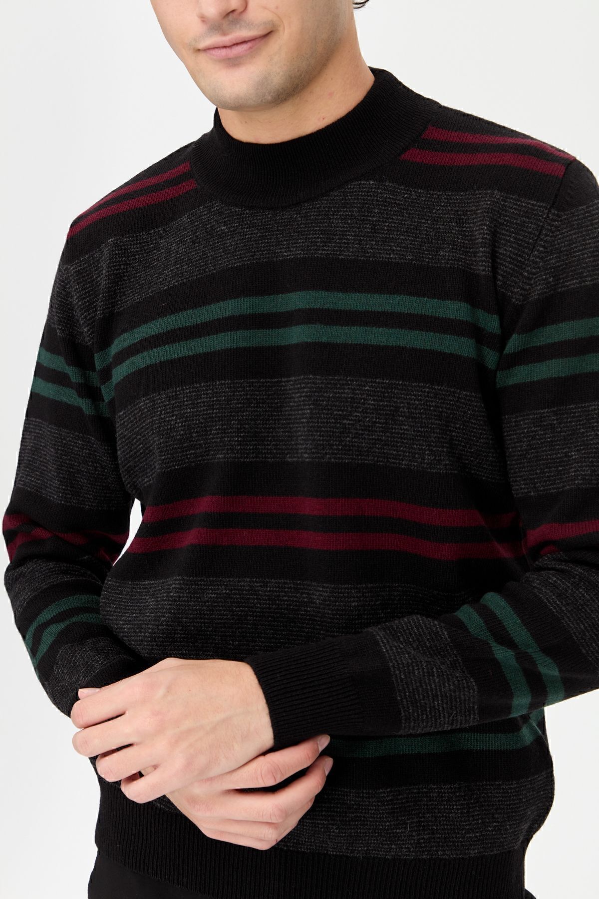 ژاکت پشمی راه راه رنگارنگ یقه اسکی مردانه، مشکی