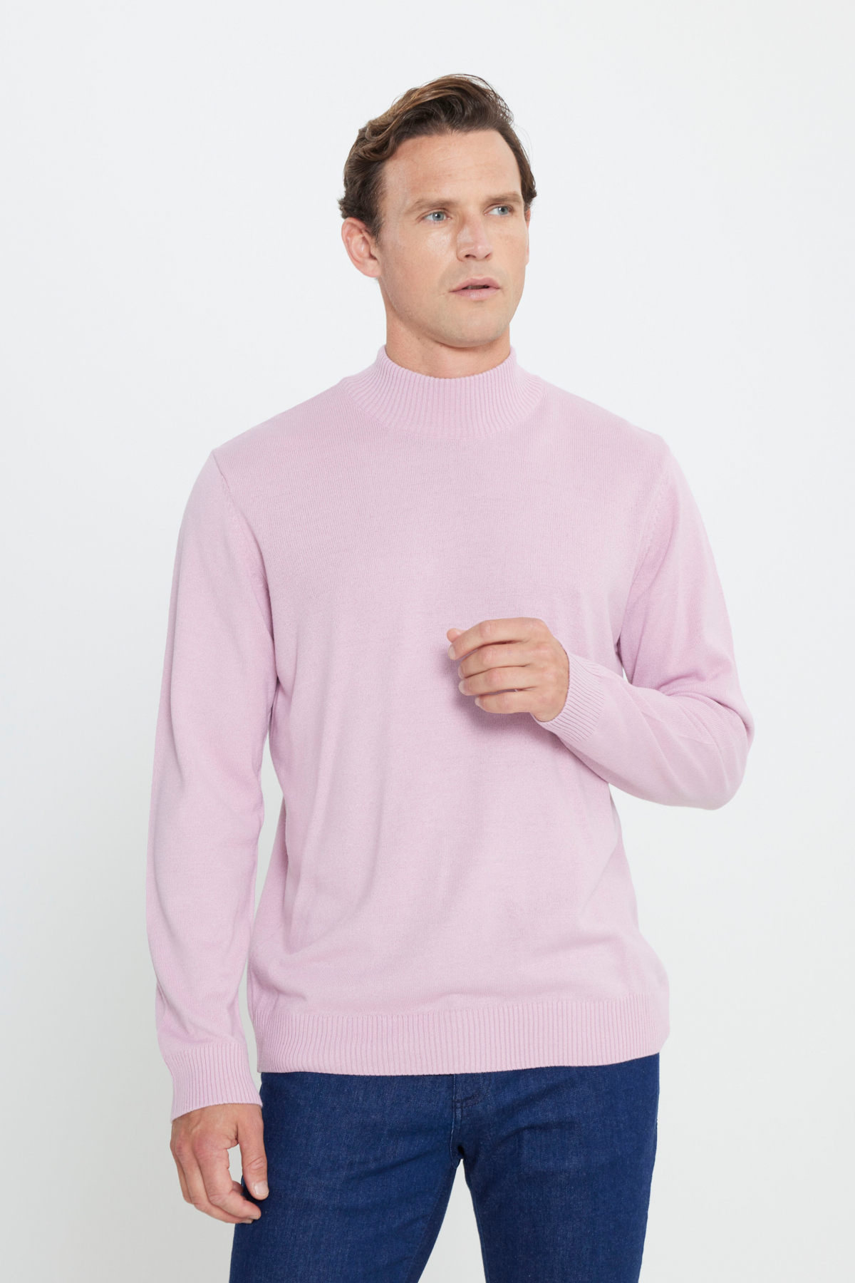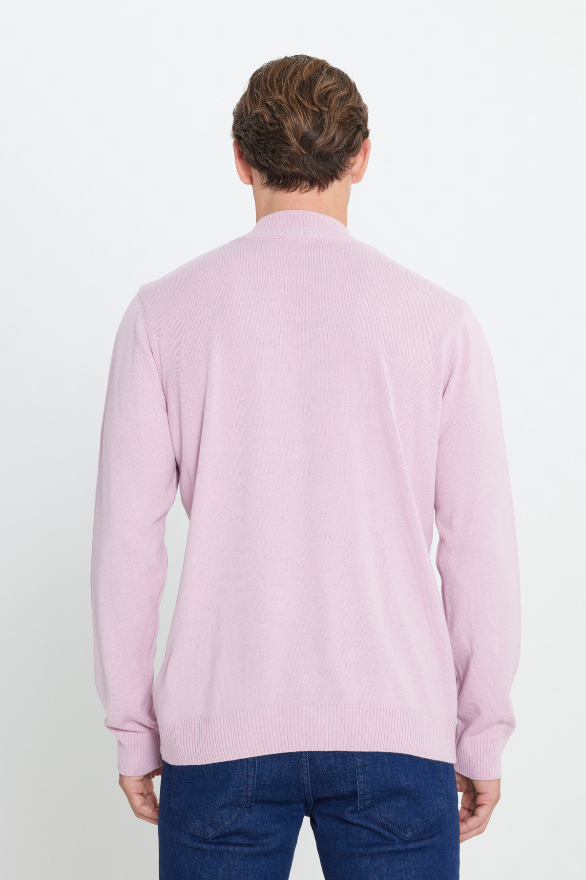 ژاکت بافتنی یقه اسکی مردانه سایز استاندارد رز صورتی ضد پرزدهی