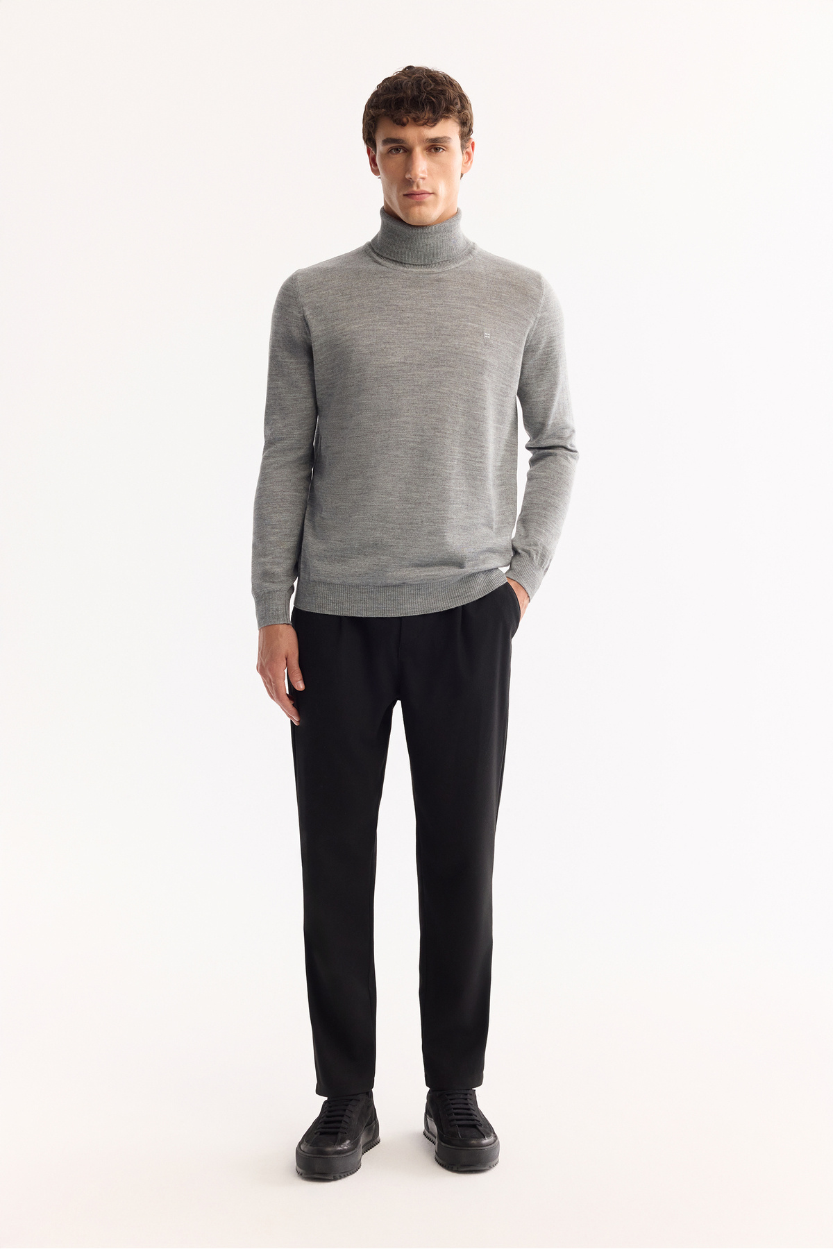 ژاکت بافتنی پشمی یقه اسکی مردانه خاکستری، سایز معمولی B005014