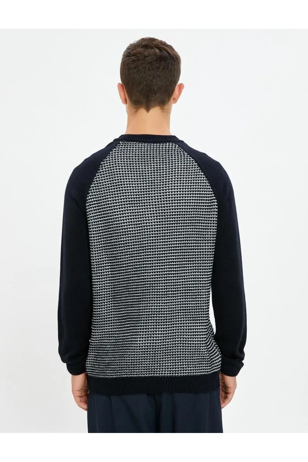 https://www.trendyol.com/koton/triko-kazak-bisiklet-yaka-dokulu-renk-bloklu-p-776639118 |