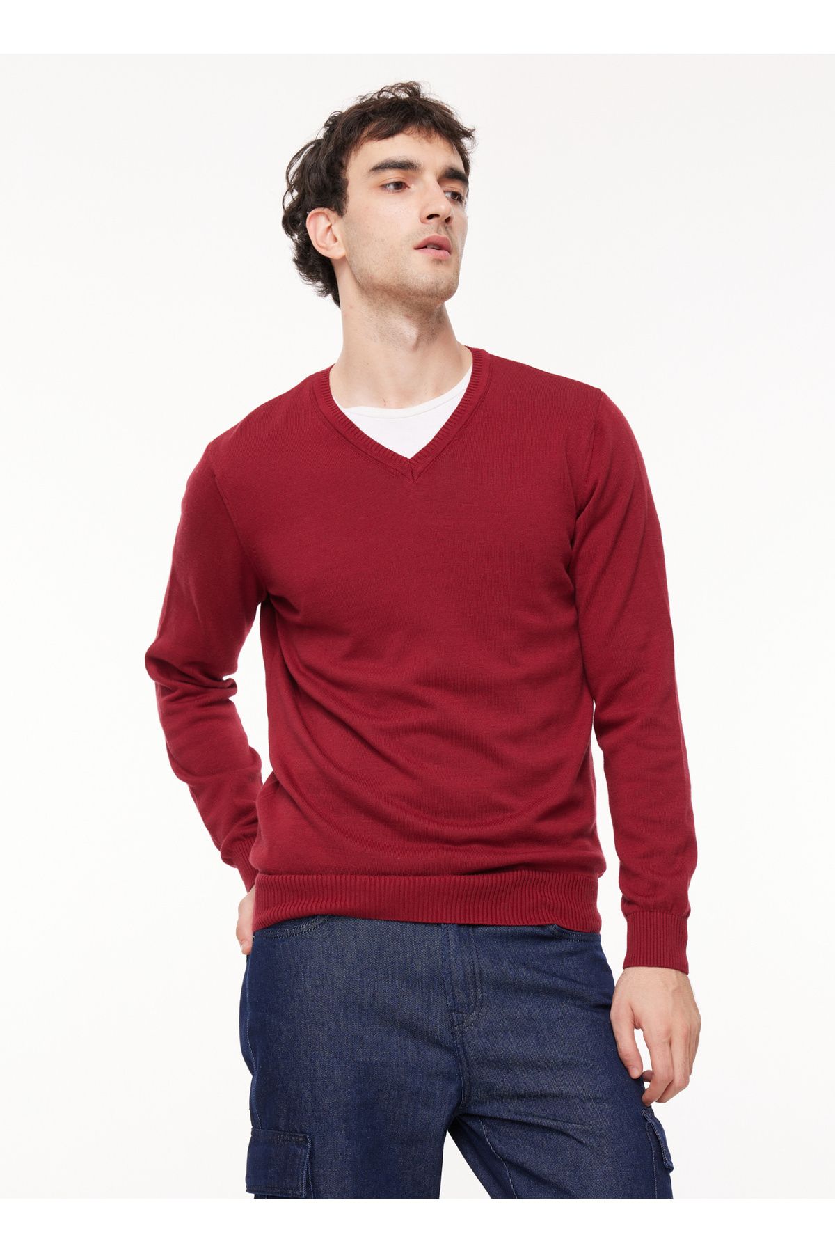 ژاکت مردانه یقه هفت معمولی، زرشکی، مدل SPBF3WM-SWE5006