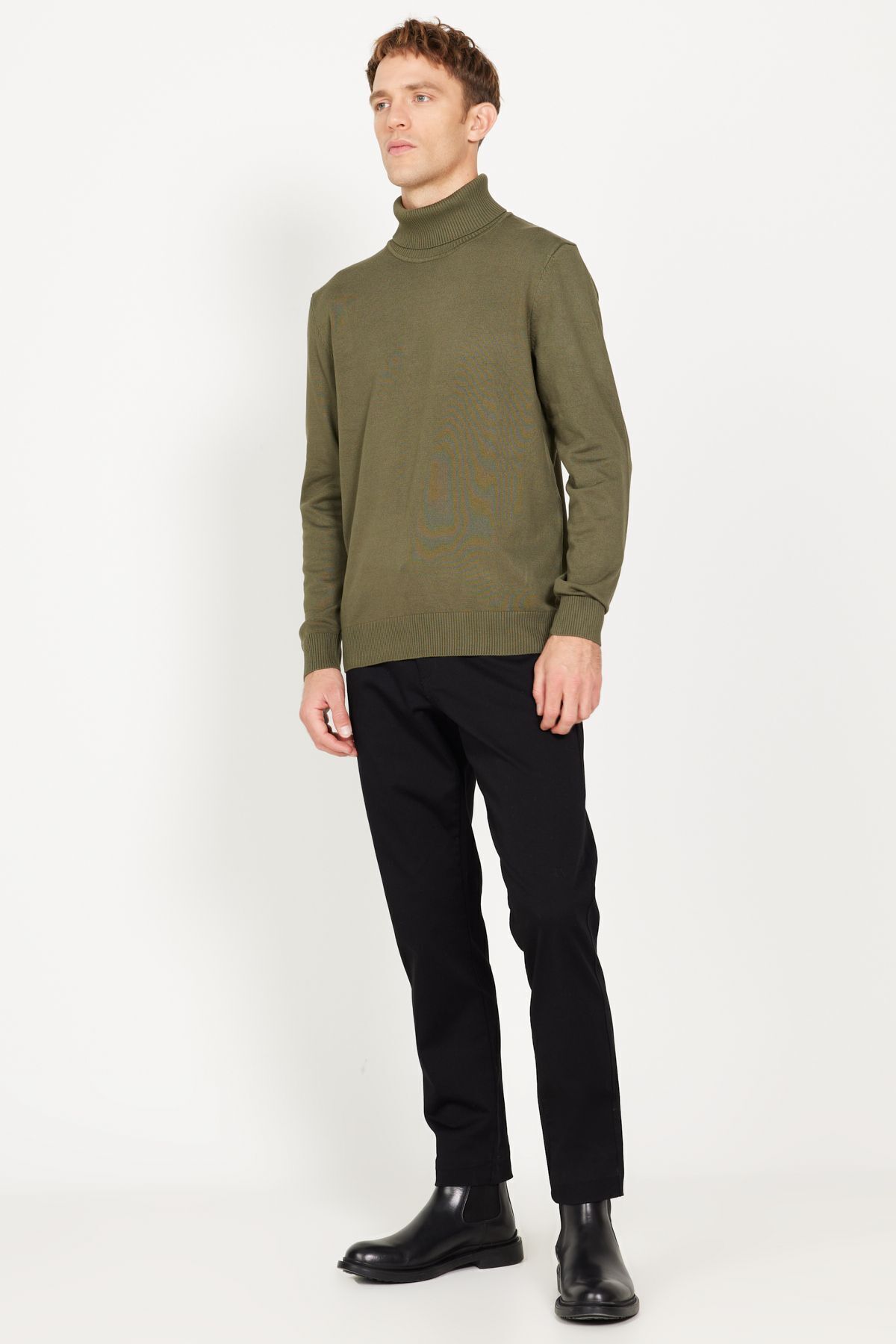 ژاکت بافتنی یقه اسکی کامل مردانه خاکی استاندارد فیت معمولی برشدار