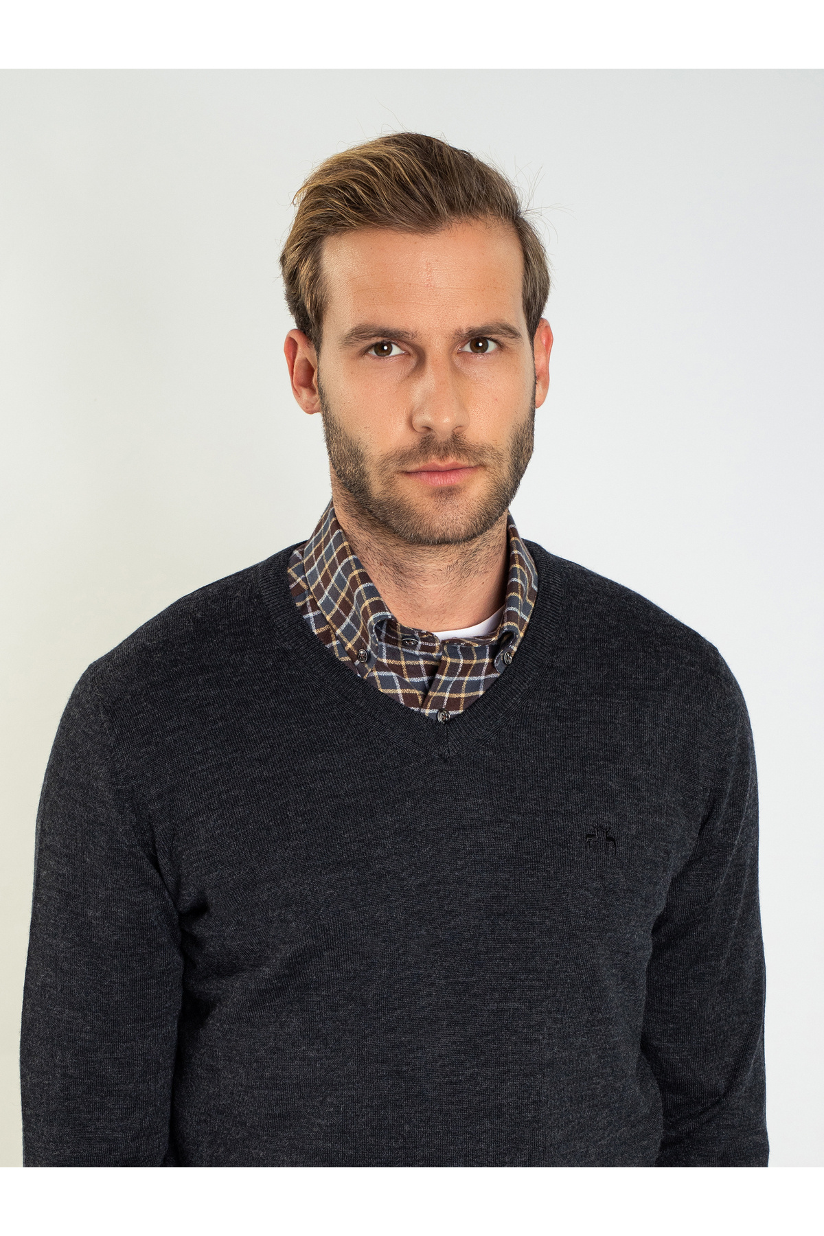 بافت و پلیور مردانه خاکستری | 113301003-404 Karaca