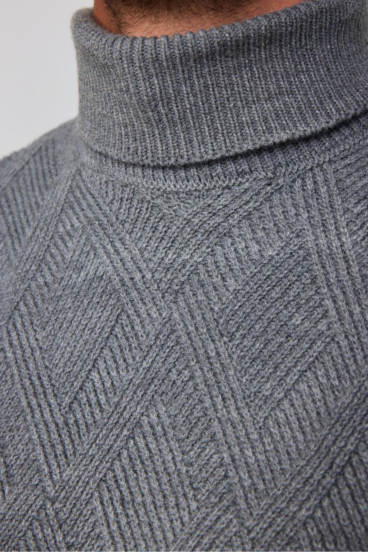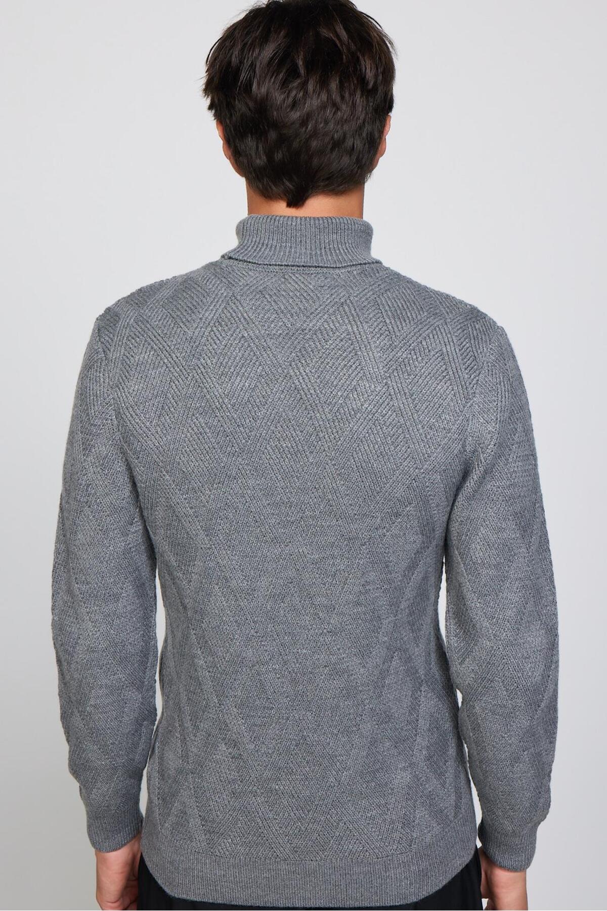 ژاکت بافتنی مردانه یقه اسکی طرح دار خاکستری باریک و کوتاه