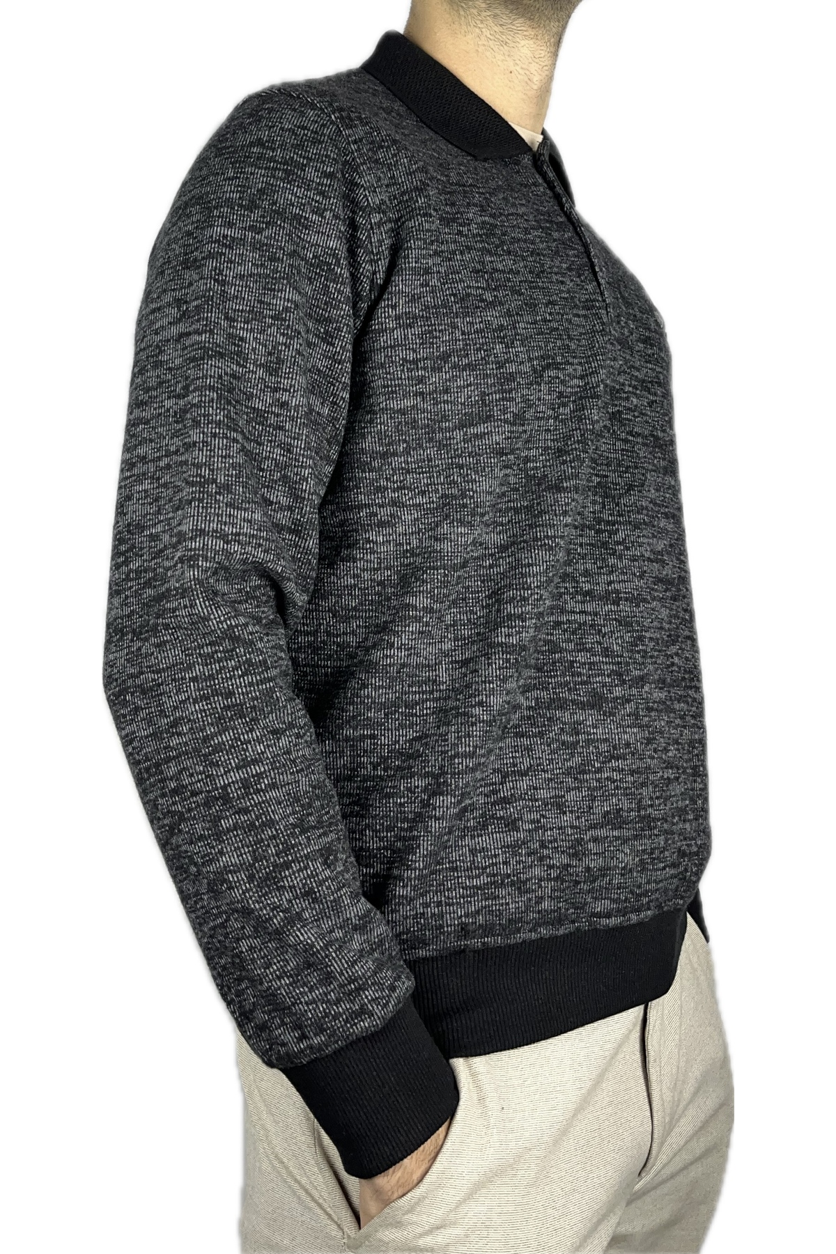 پلیور زمستانی جیب‌دار یقه پولو سایز معمولی مردانه، مشکی و سرمه‌ای، بسته دو عددی