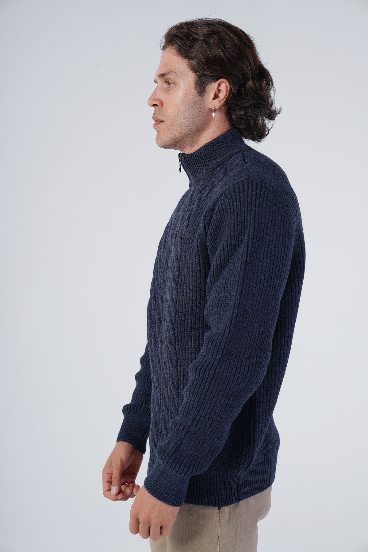ژاکت پشمی یقه گرد سرمه ای مردانه مدل Trist-5300