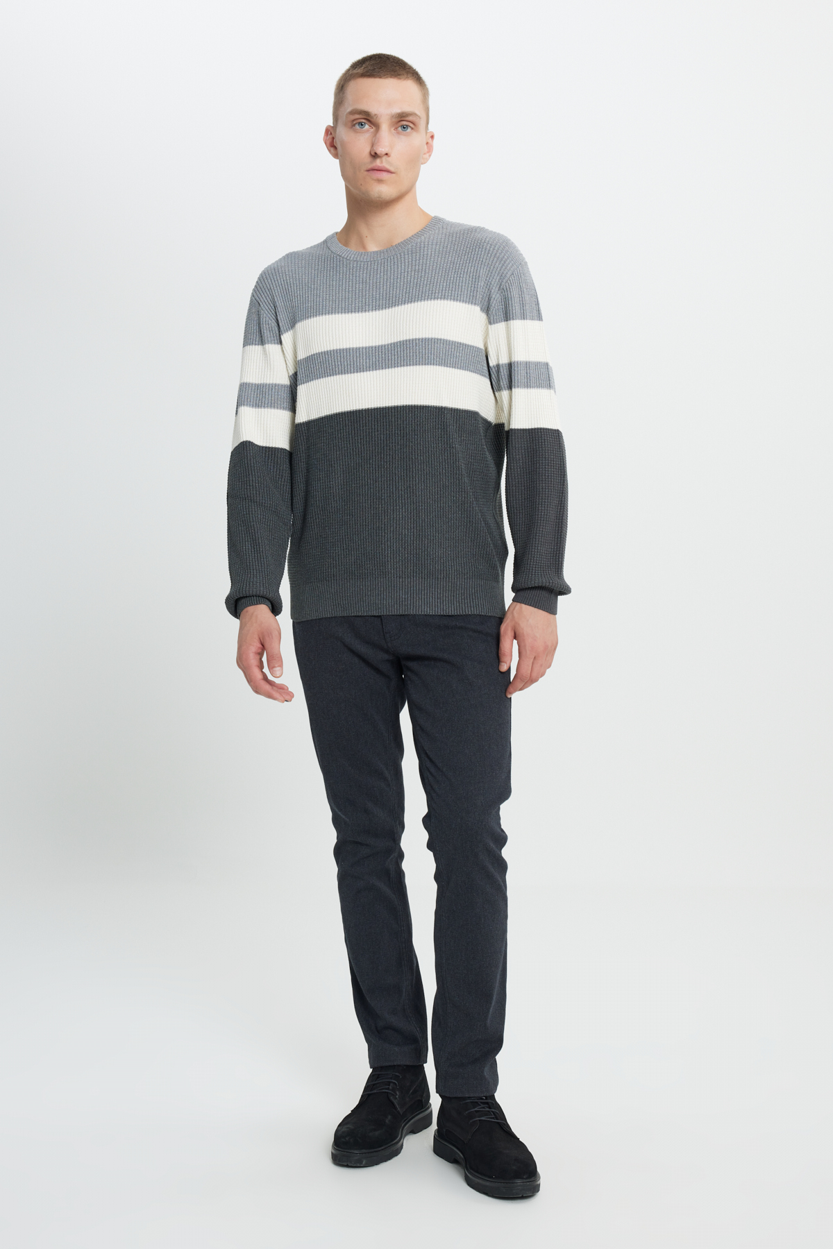 پلیور بافتنی مردانه طرحدار آنتراسیت-ملانژ، یقه گرد برش معمولی، سایز استاندارد