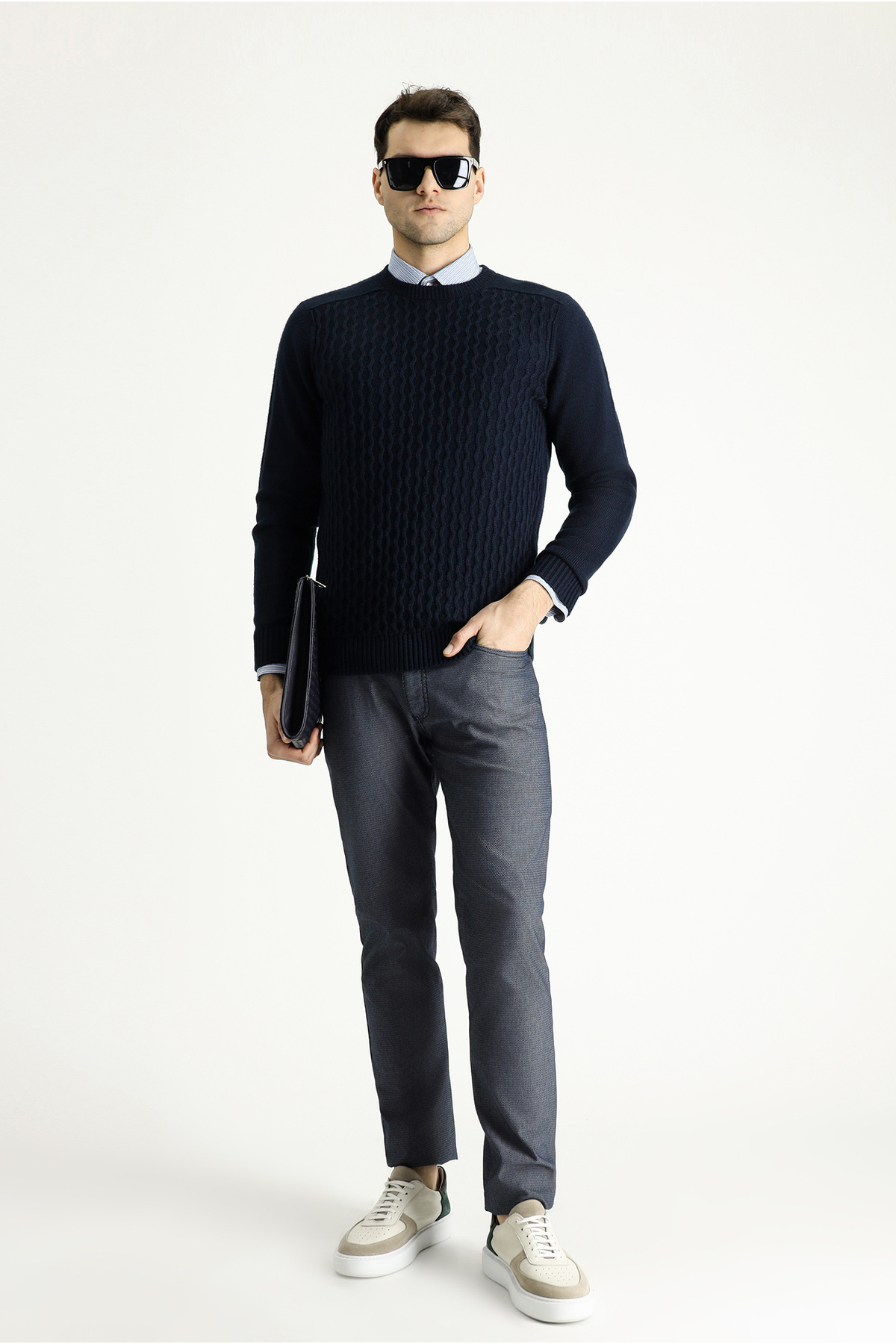بافت و پلیور کیگیلی آبی سرمه ای آستین بلند اکریلیک | | نمایندگی کیگیلی