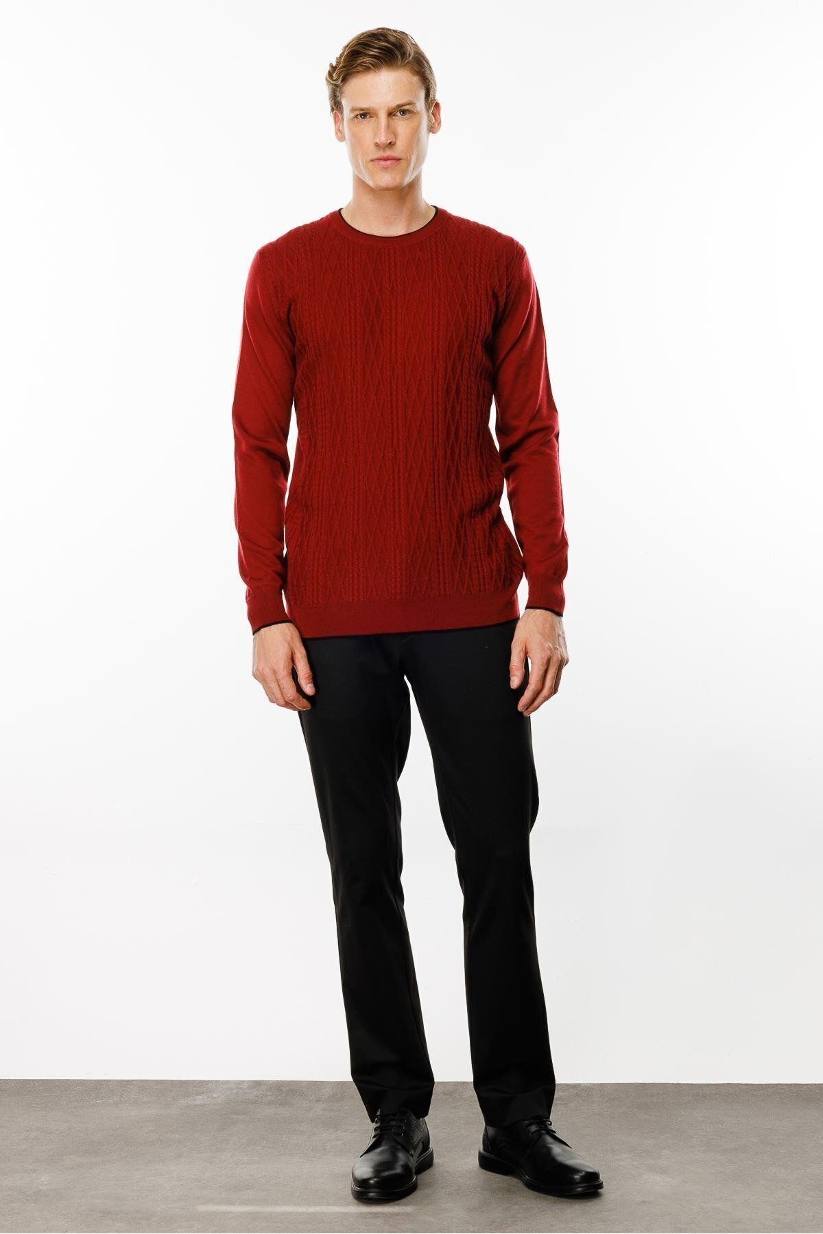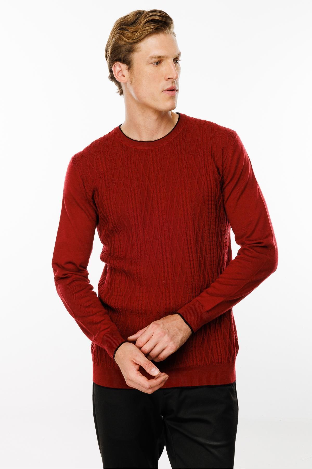 پلیور یقه گرد مردانه با طرح الماس در جلو، زرشکی