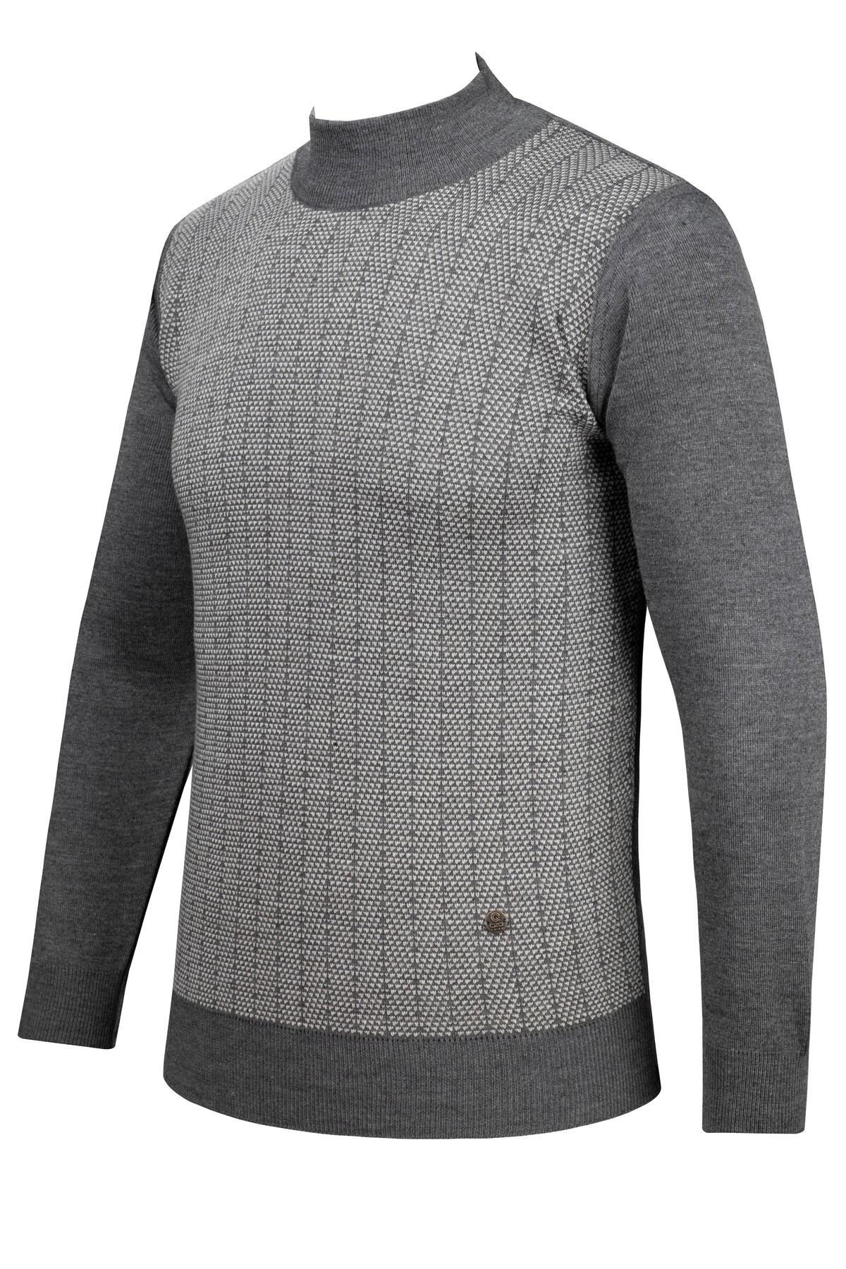 ژاکت بافتنی مردانه یقه اسکی خاکستری با طرح بافتنی استیل، مدل کلاسیک – 5007B