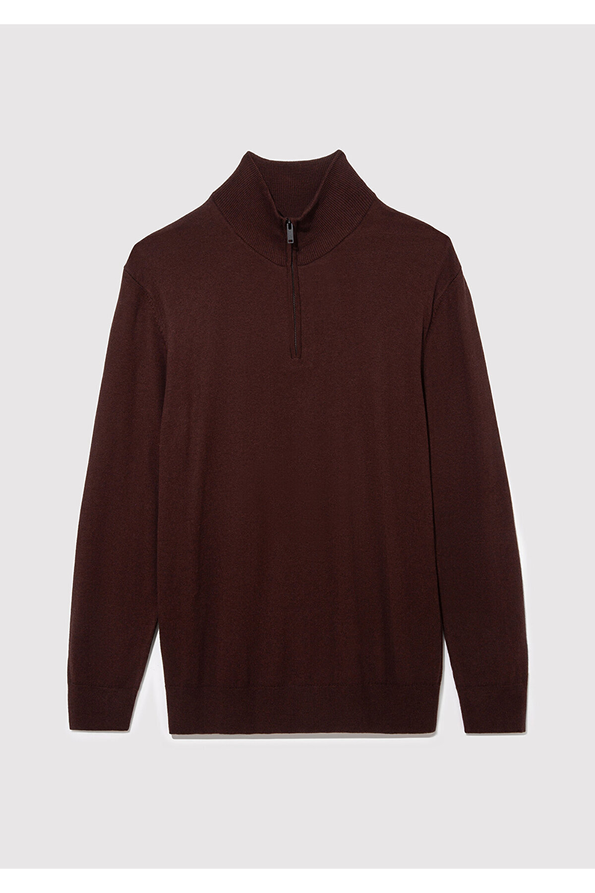پلیور یقه ایستاده نیم زیپ زرشکی، سایز معمولی / برش معمولی 0710247-88083