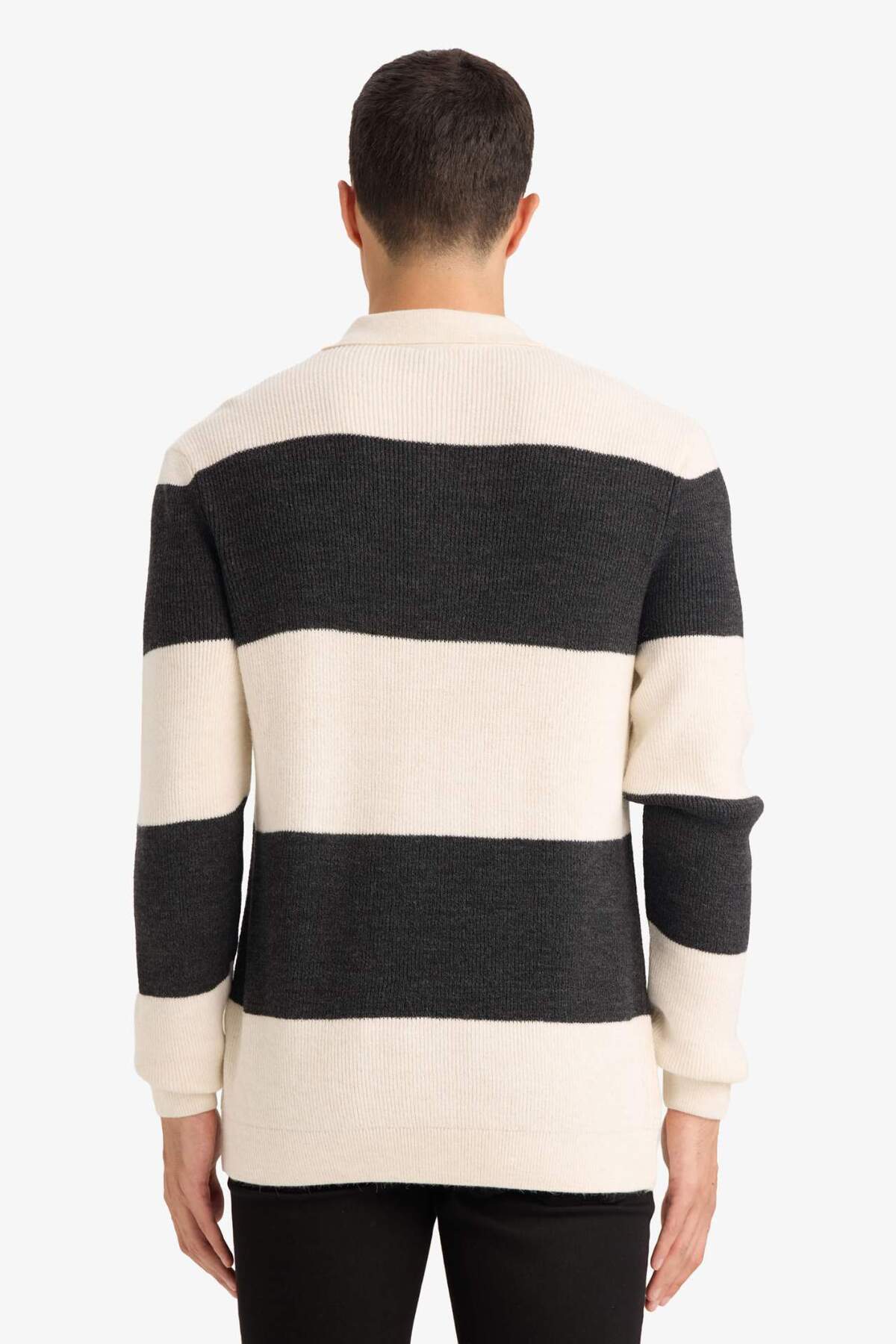 ژاکت بافتنی راه راه یقه پولو سایز استاندارد D3590AX24WN