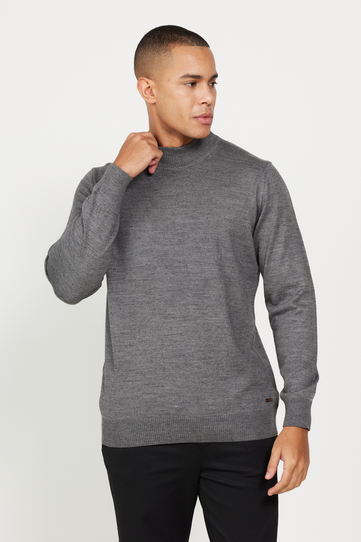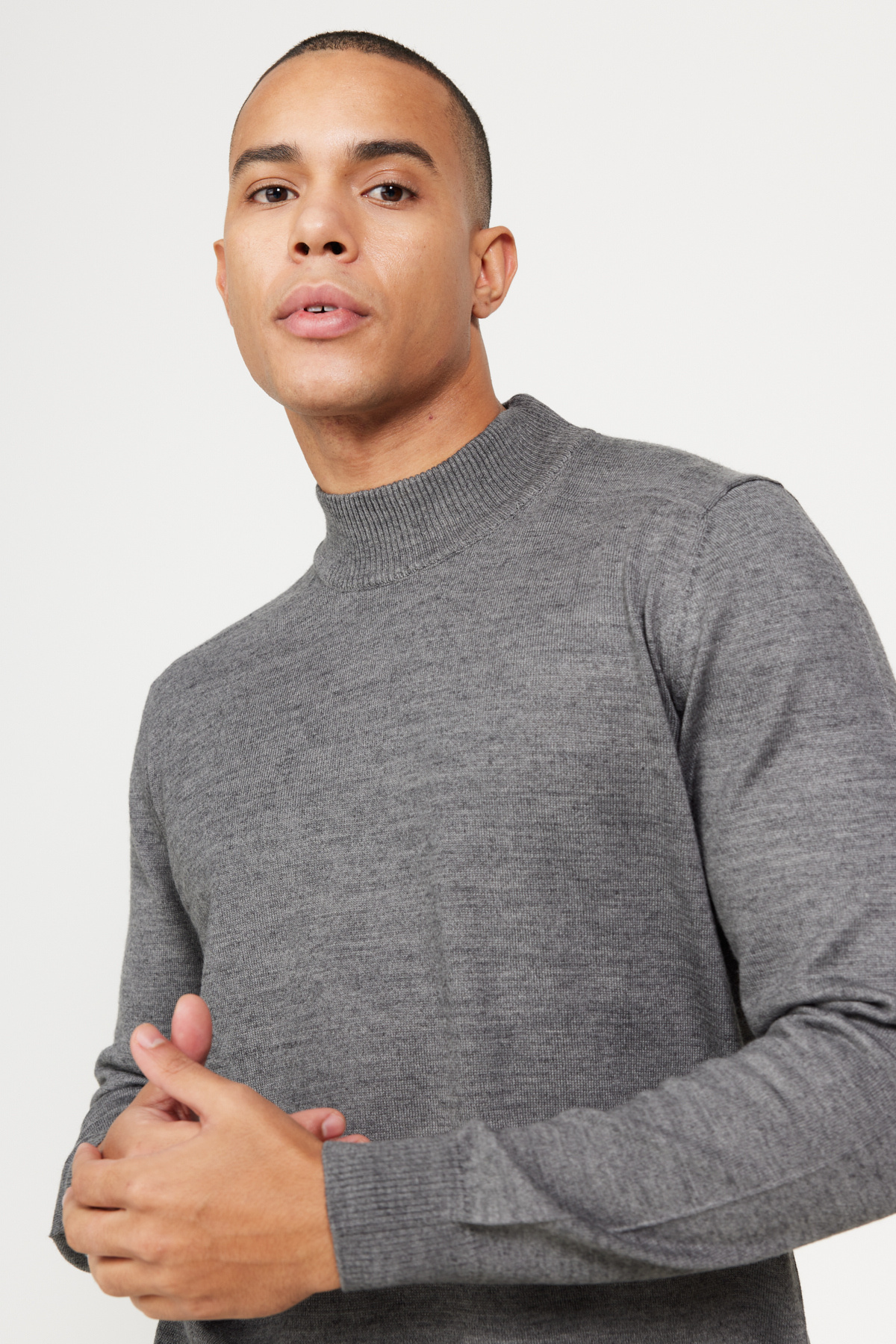 ژاکت بافتنی مردانه پشمی خاکستری ملانژ، برش معمولی، یقه اسکی، سایز استاندارد