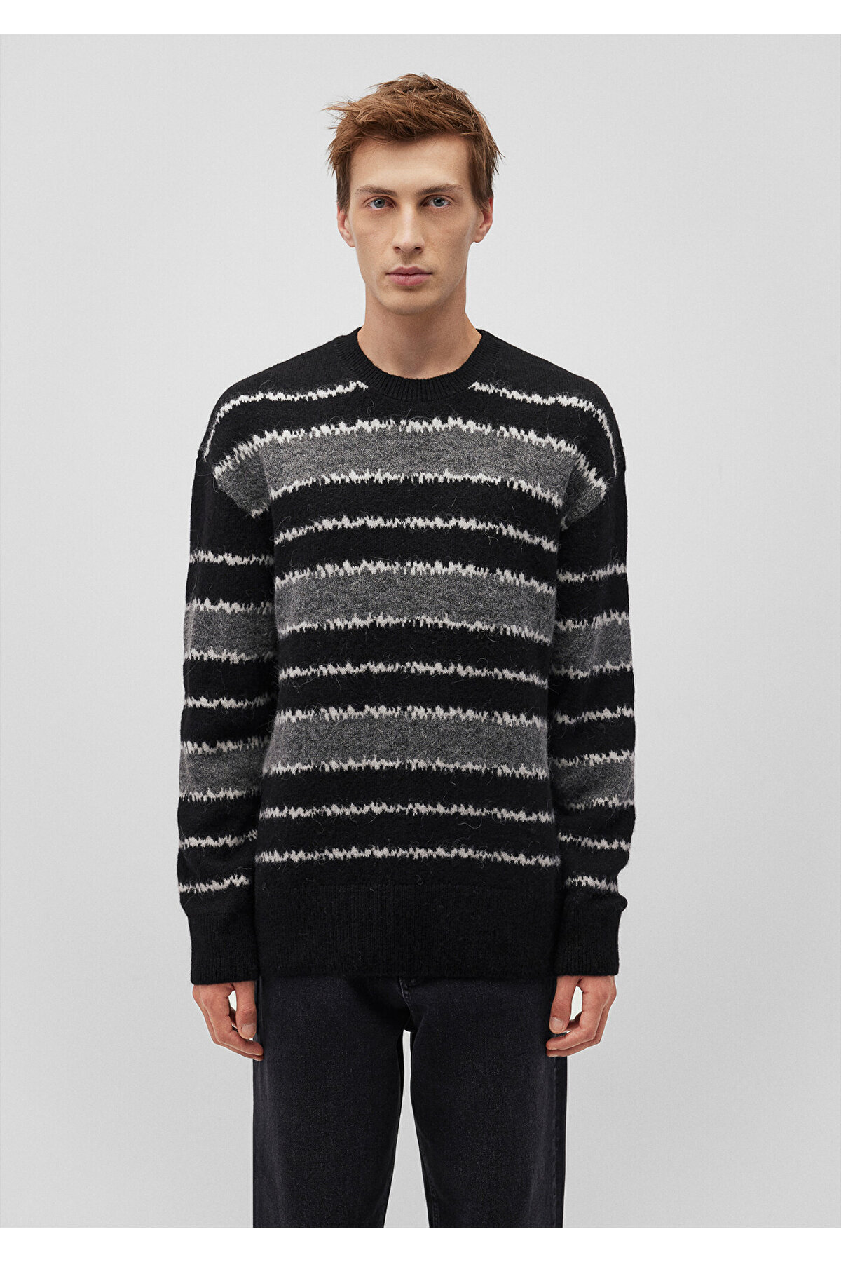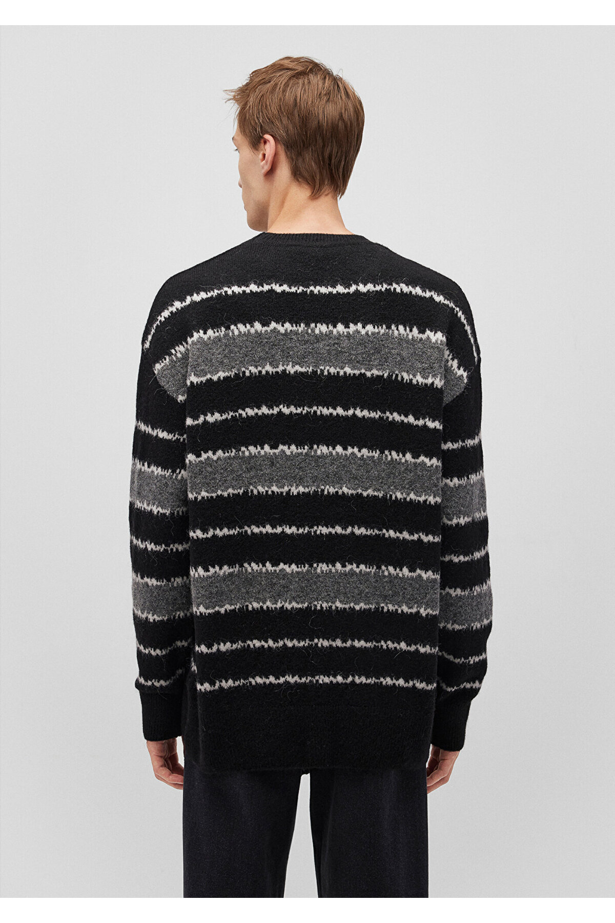 ژاکت پشمی راه راه مشکی، گشاد / برش آزاد و راحت 0710235-900