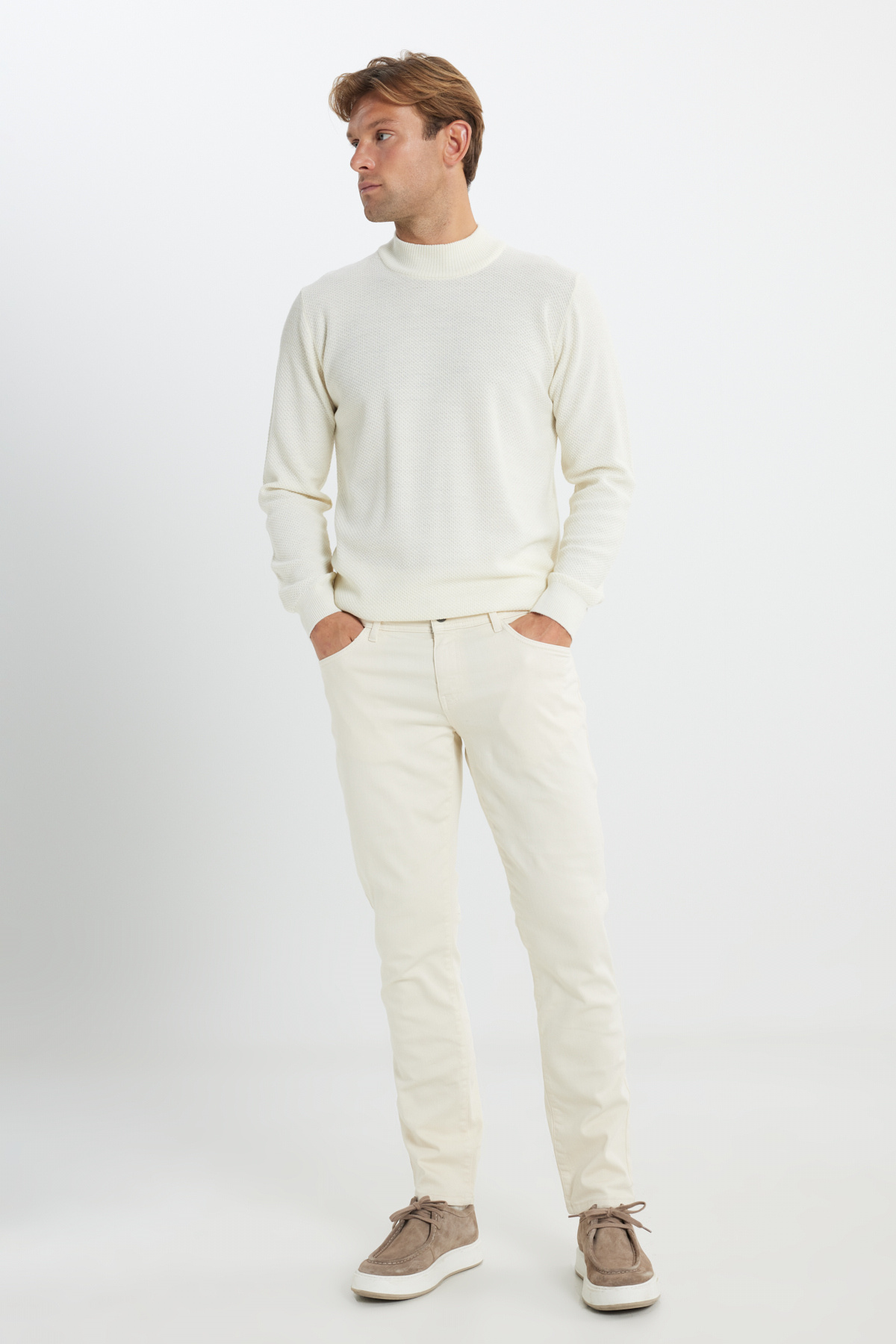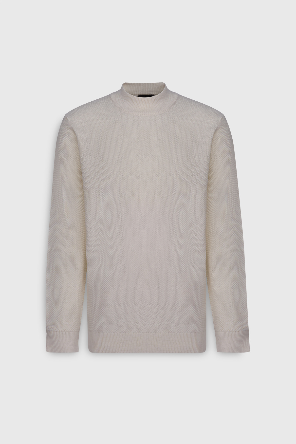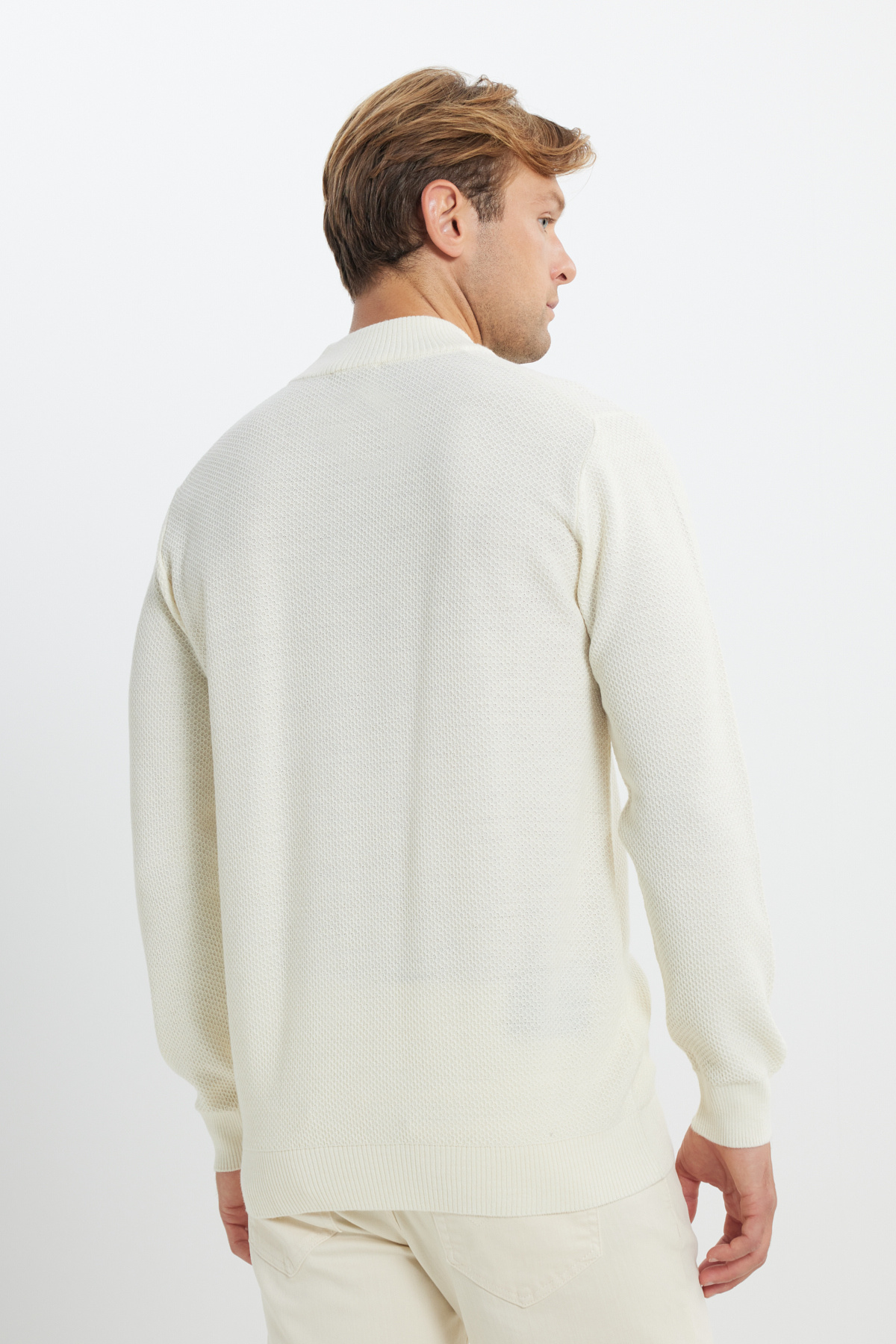 ژاکت بافتنی پشمی یقه اسکی مردانه، یقه اسکی، برش معمولی، گرم و سفید رنگ