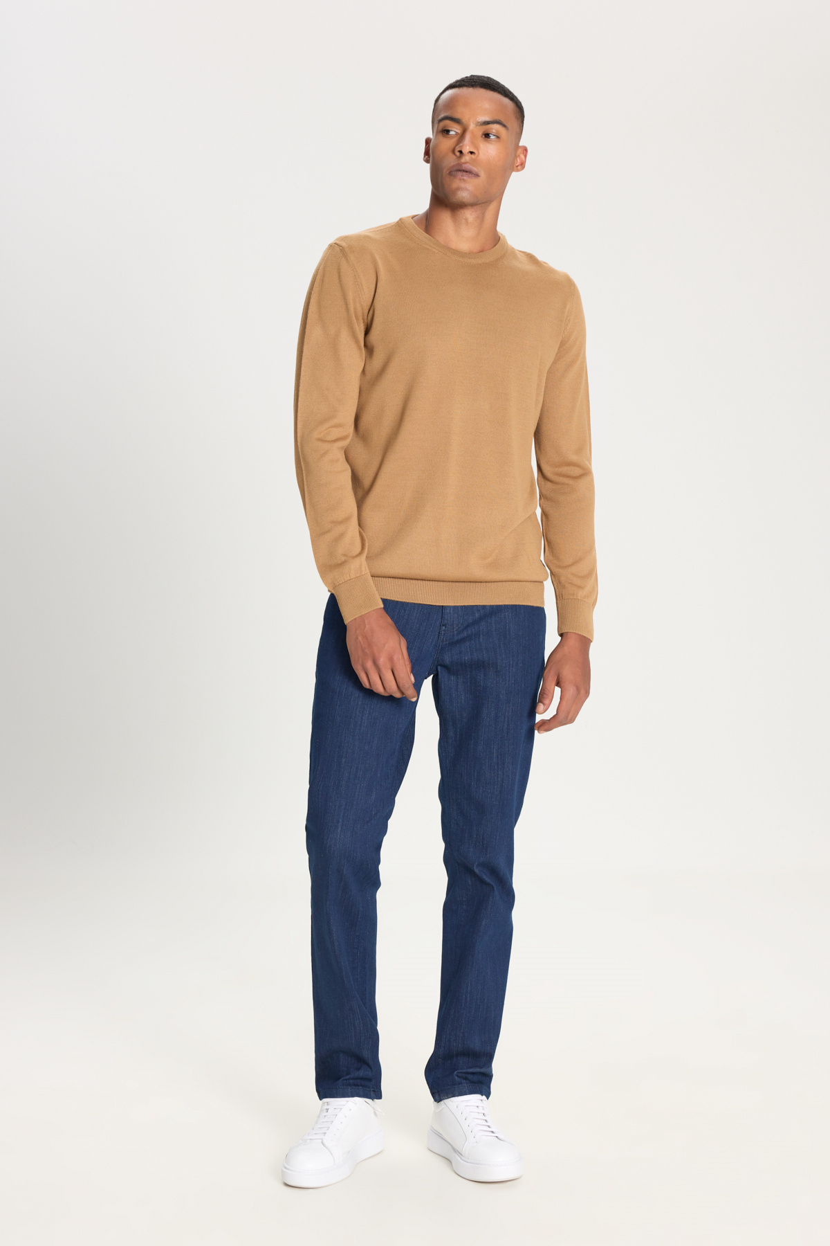 ژاکت بافتنی یقه گرد مردانه مدل Camel Standard Fit Regular Cut