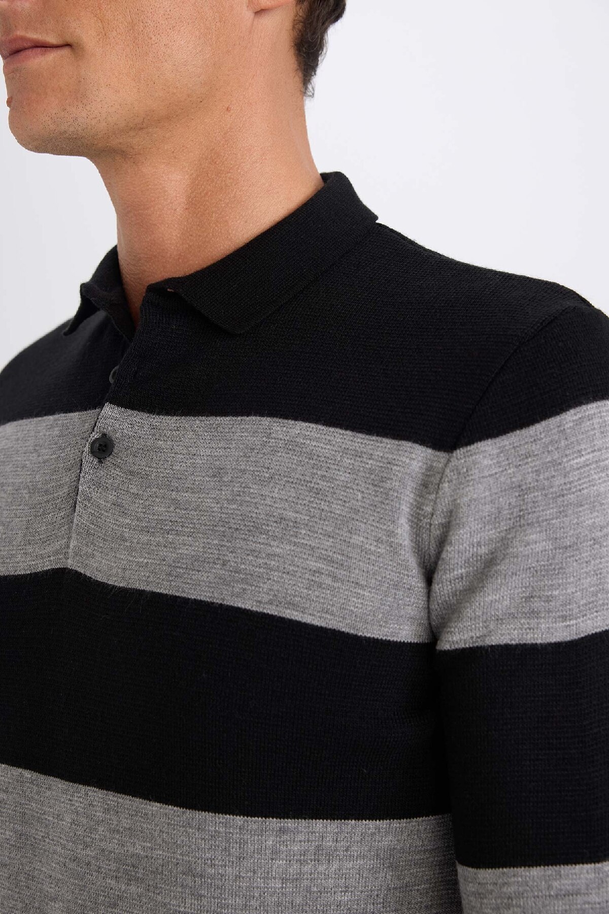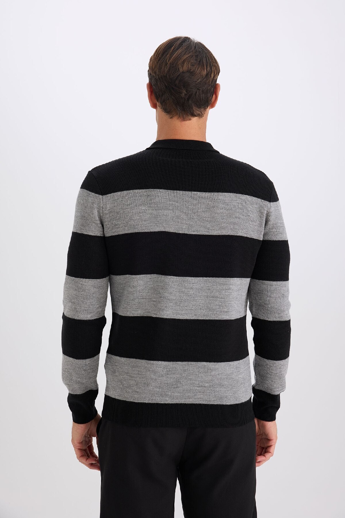 پلیور بافتنی یقه گرد راه راه استاندارد سایز Y4194AZ24WN