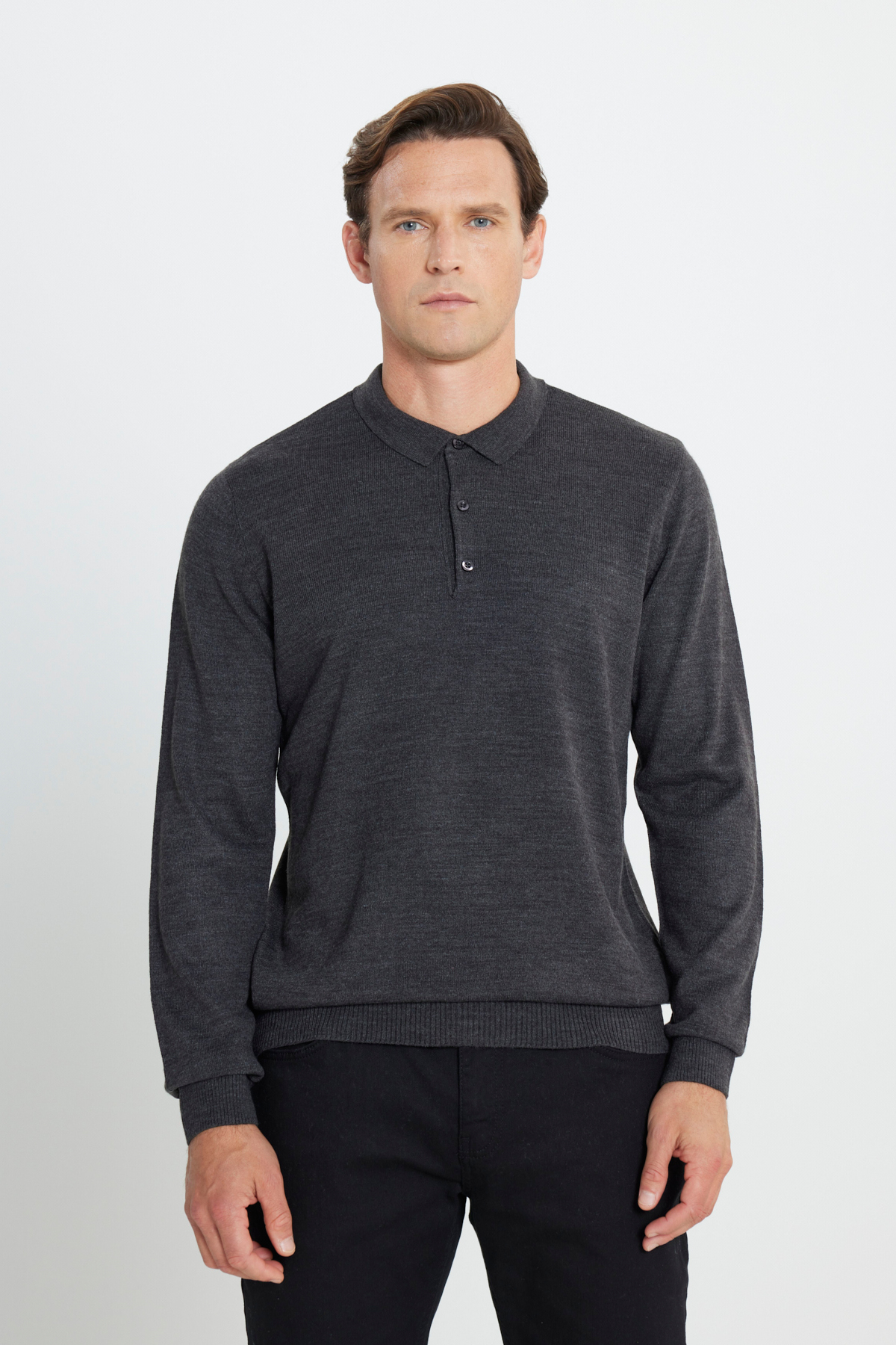 پارچه ضد پرزدهی آنتراسیت-ملانژ مردانه، یقه پولو بافتنی استاندارد سایز