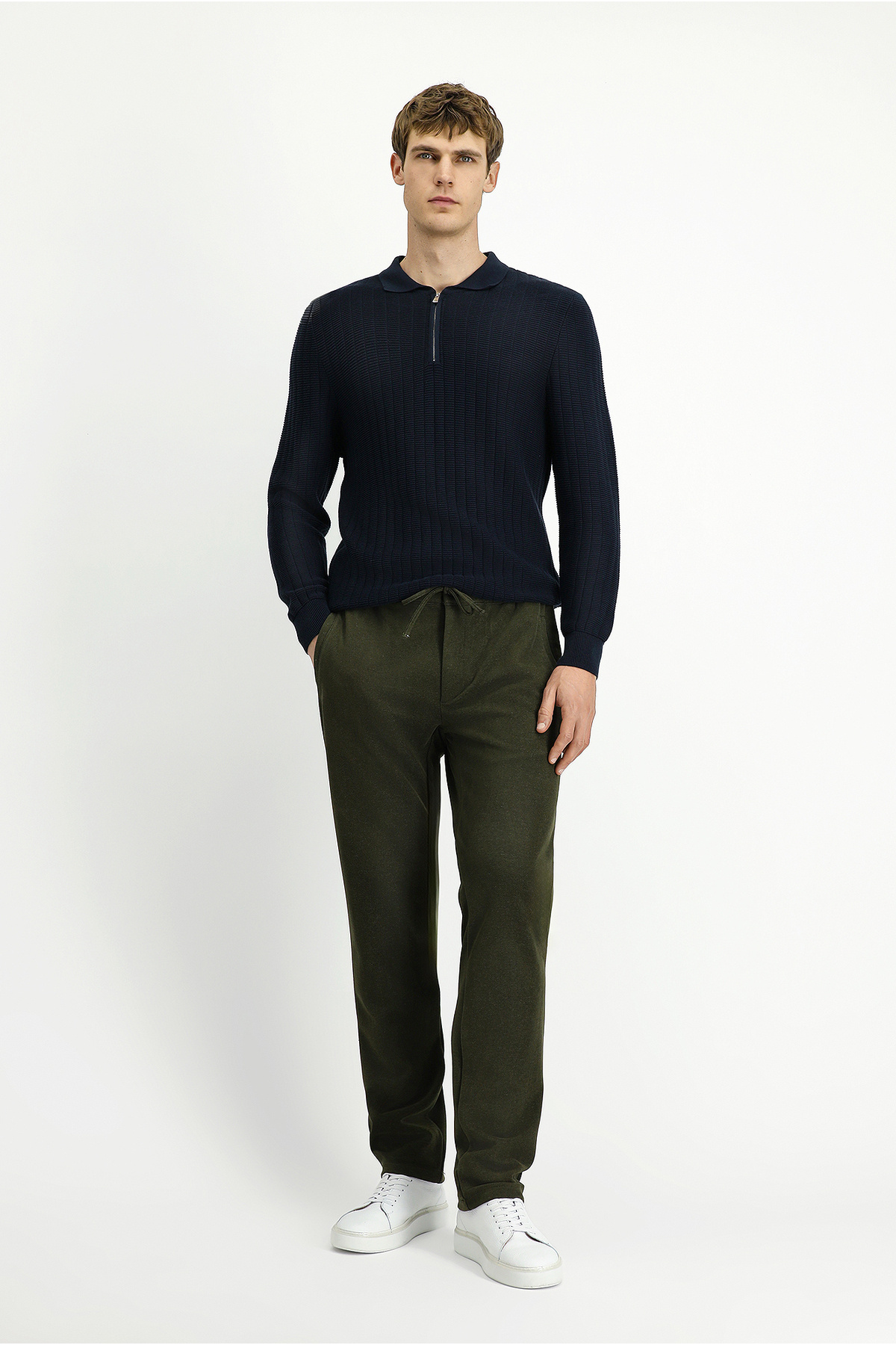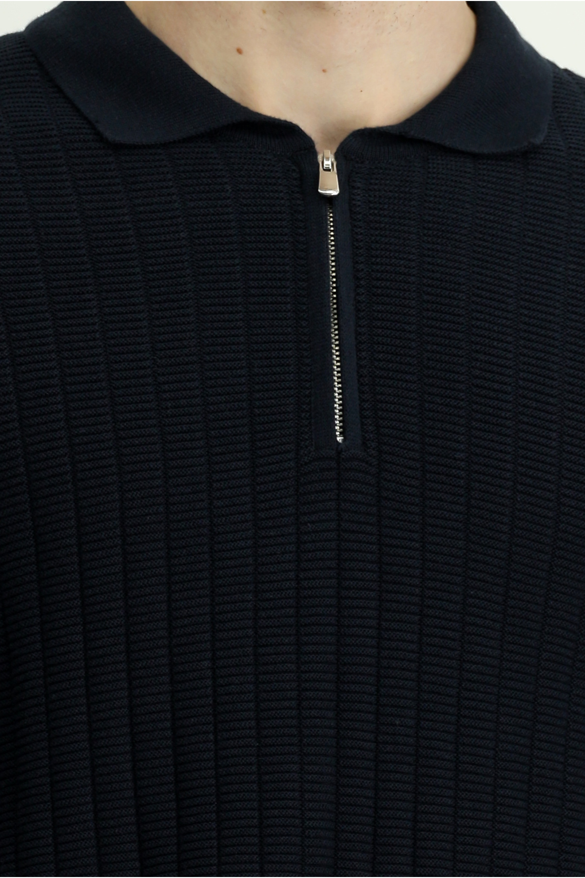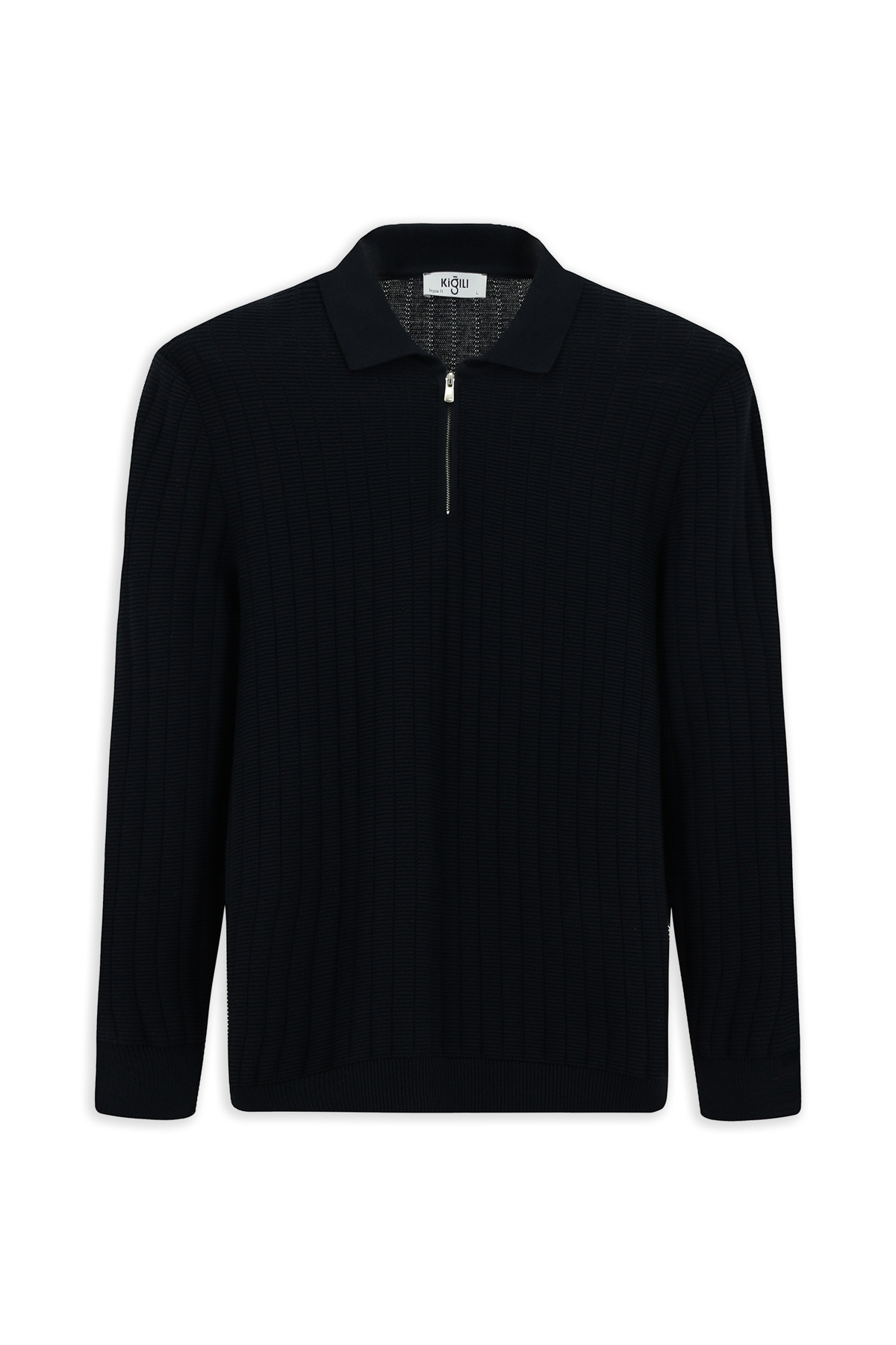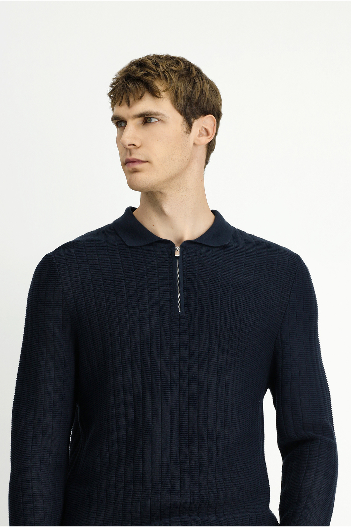 ژاکت بافتنی نخی یقه پولو زیپدار معمولی فیت بافتدار