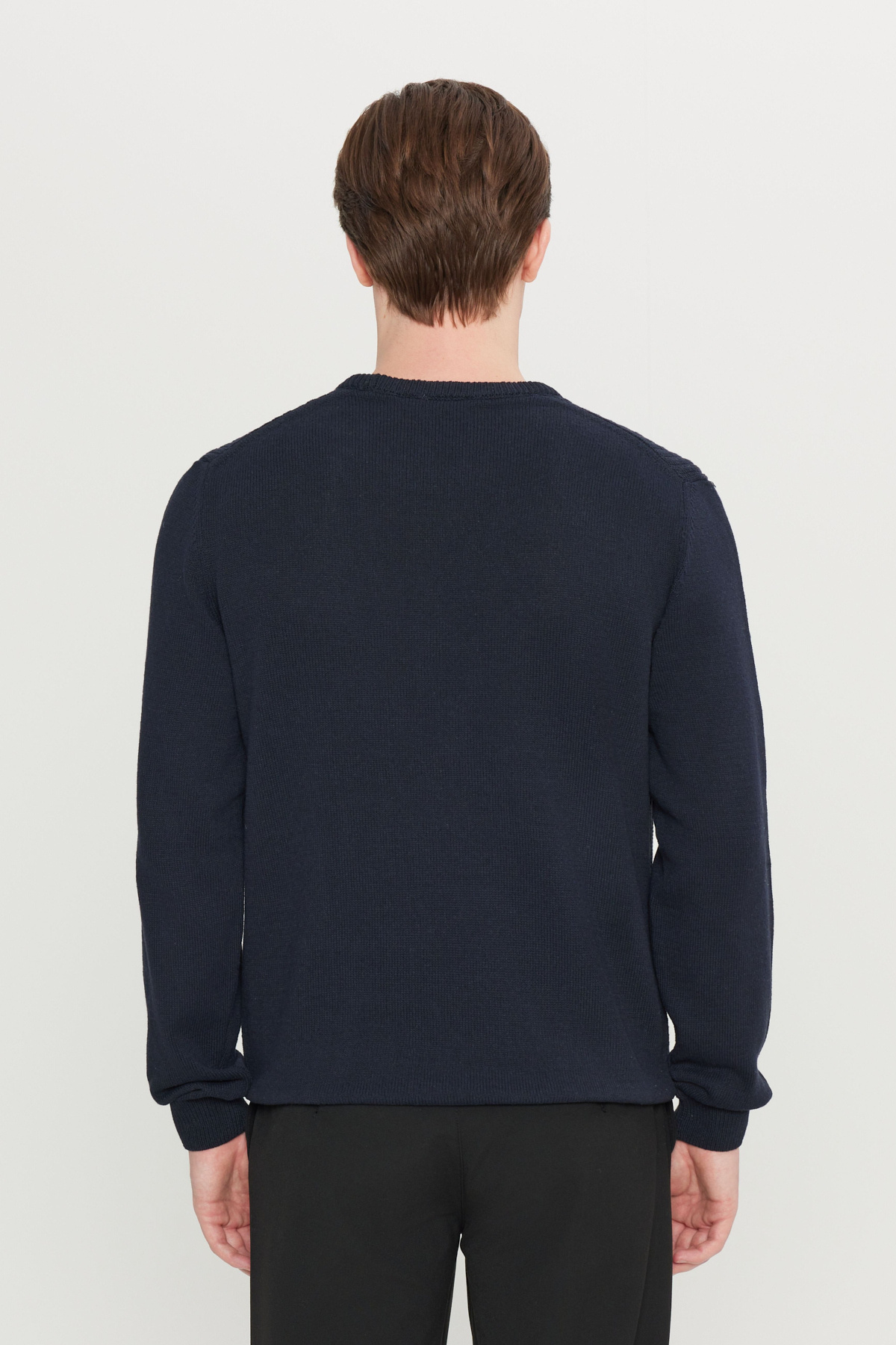 ژاکت بافتنی مردانه طرحدار یقه گرد نخی سرمهای سایز استاندارد