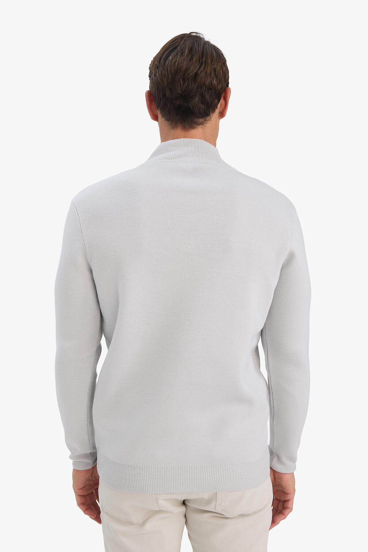 ژاکت بافتنی مردانه یقه ایستاده سایز استاندارد، خاکستری روشن، A5184AX/GR184