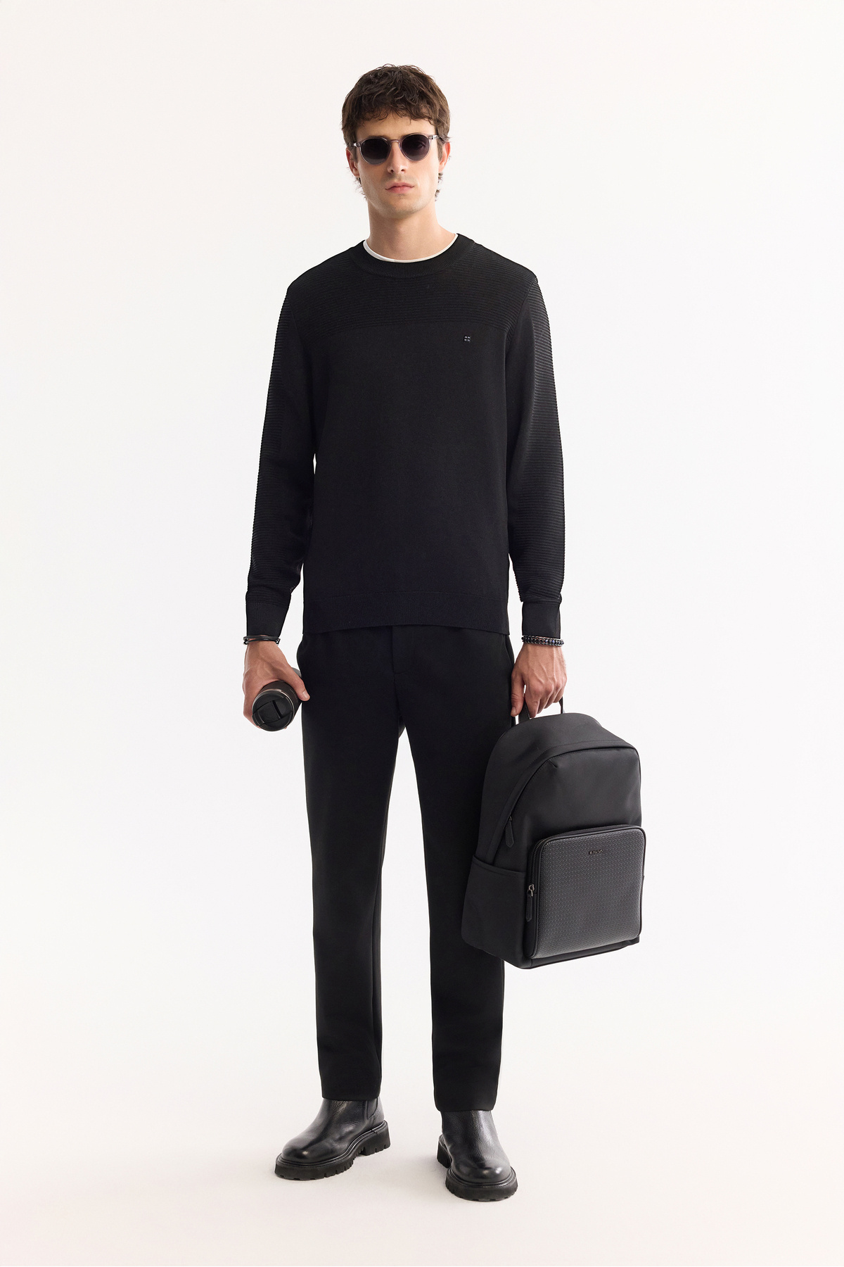 ژاکت بافتنی مردانه یقه گرد مشکی، ریون بدون پرز، سایز معمولی A52Y5018
