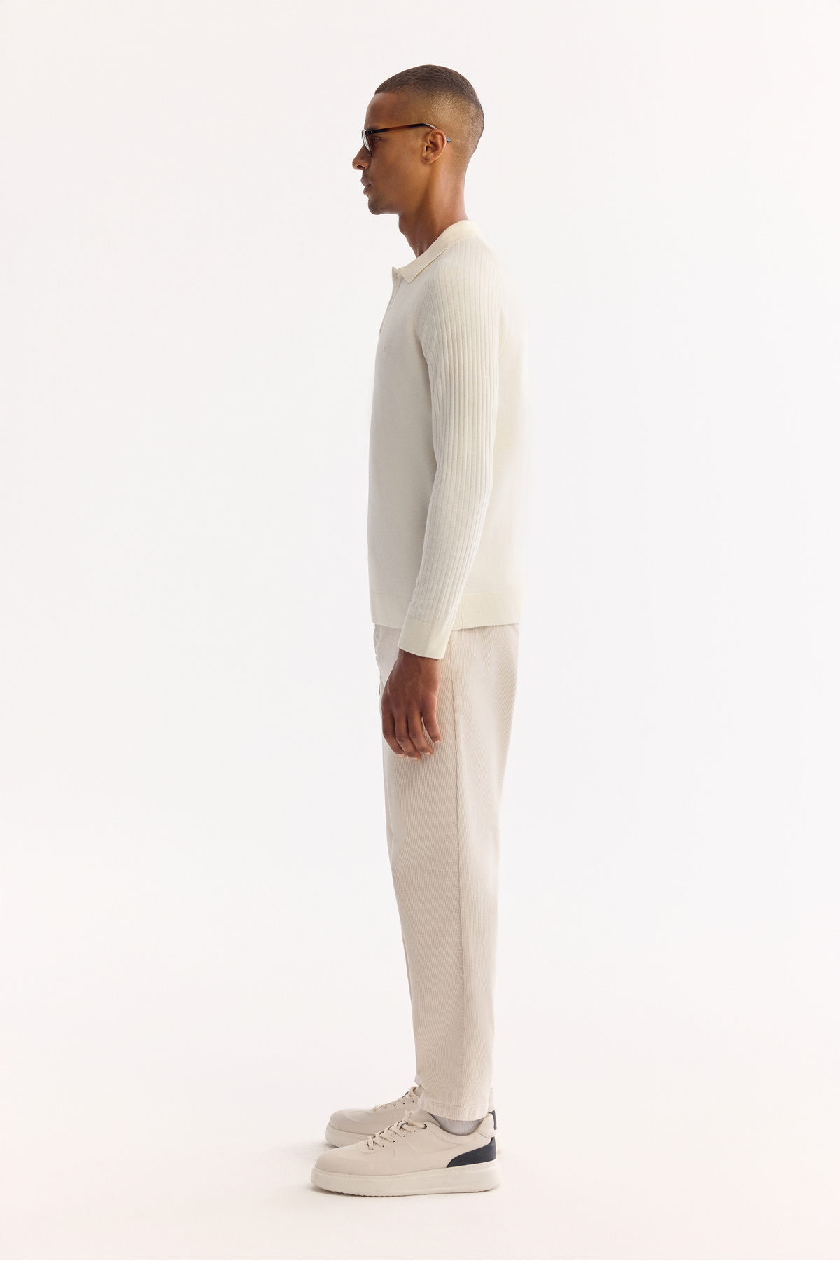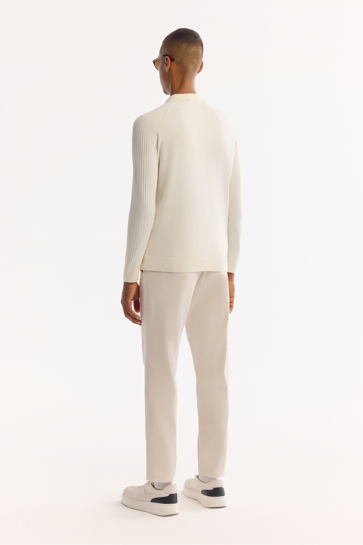 ژاکت بافتنی مردانه یقه پولو سفید طرحدار دکمهدار نرم و لطیف مدل A52Y5030