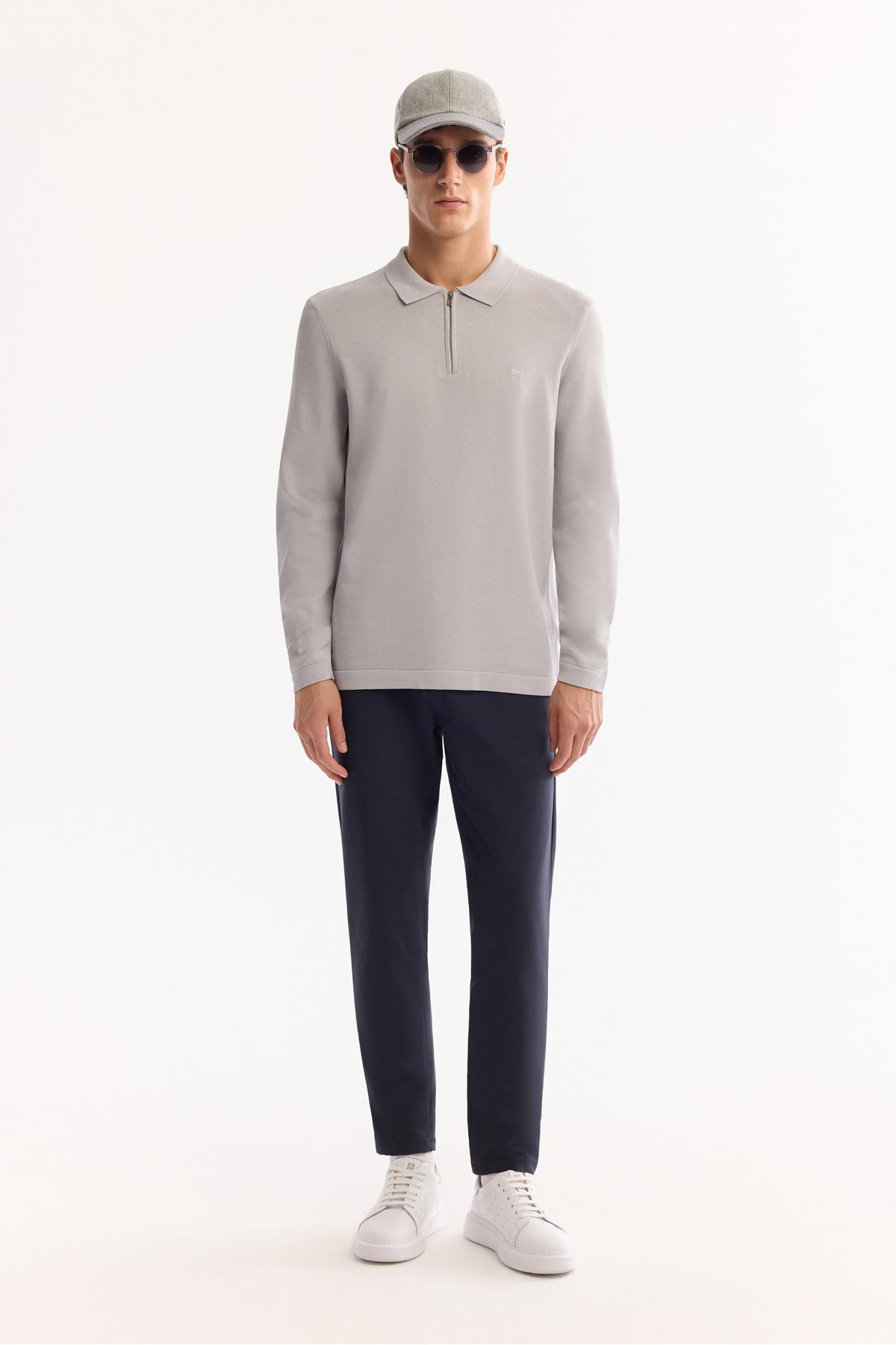 ژاکت بافتنی مردانه یقه پولو خاکستری زیپ‌دار، ریون بدون پرز، سایز معمولی B005150