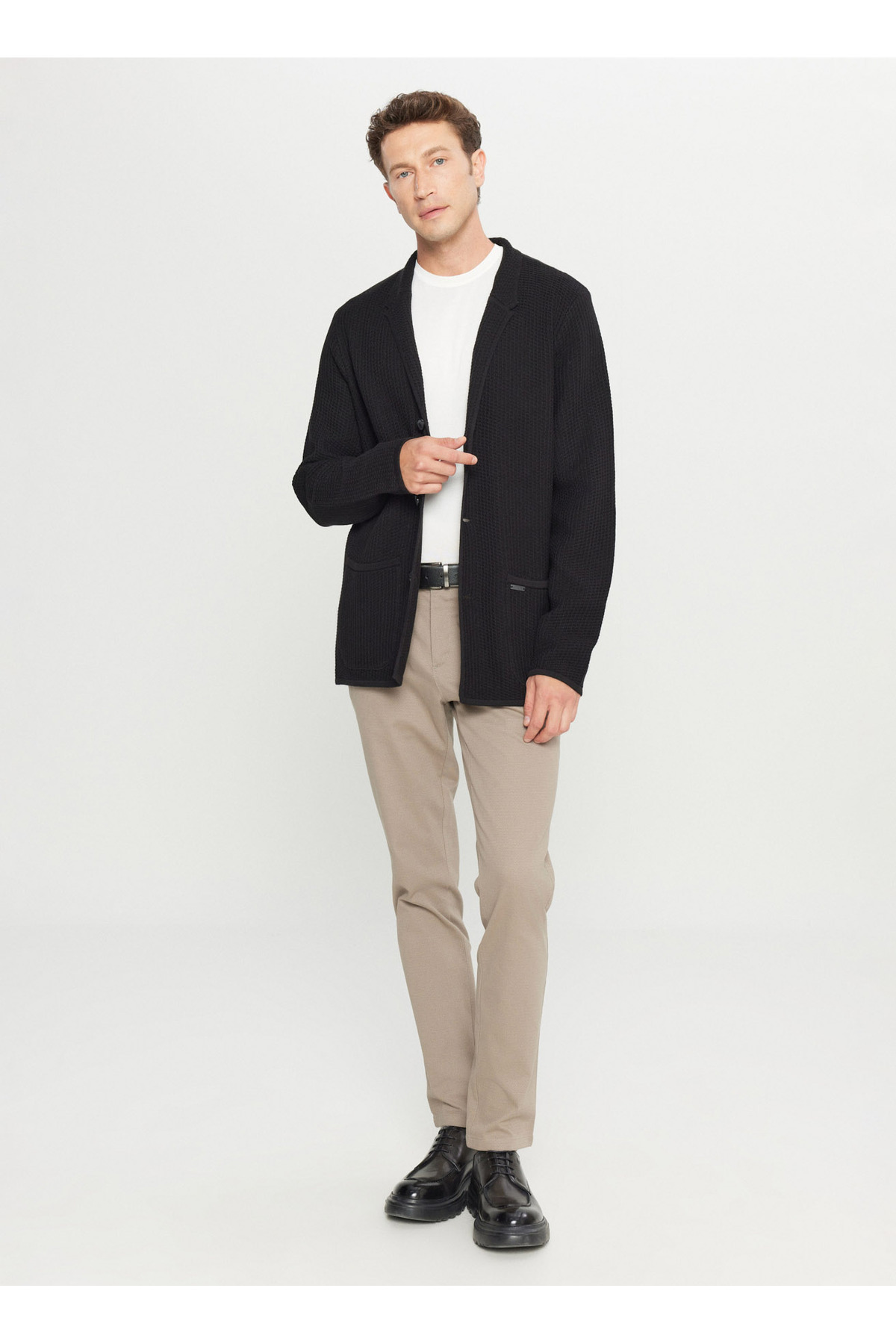 ژاکت مردانه مشکی استاندارد یقه مونو ACE049261282_SYH