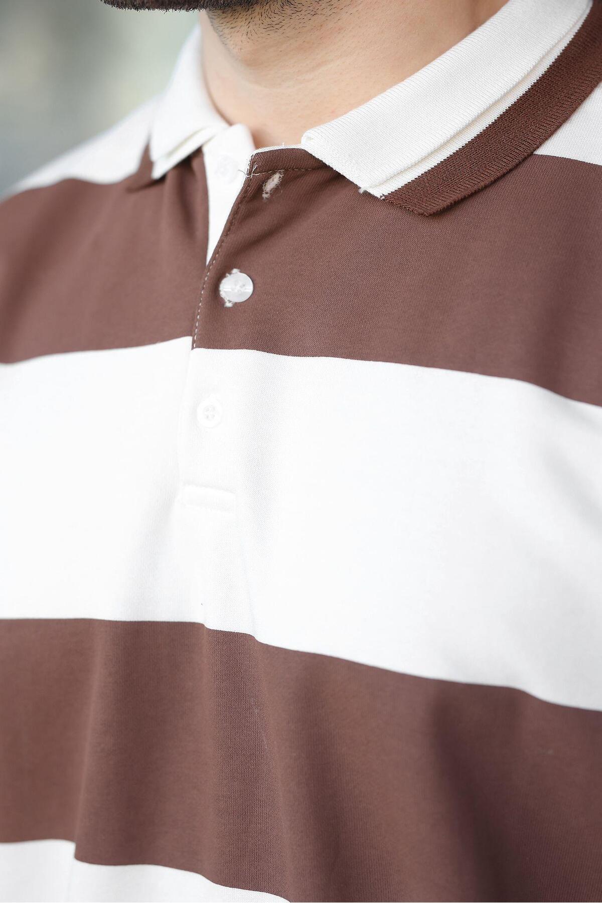 ژاکت مردانه یقه پولو راه راه قهوه ای E7173