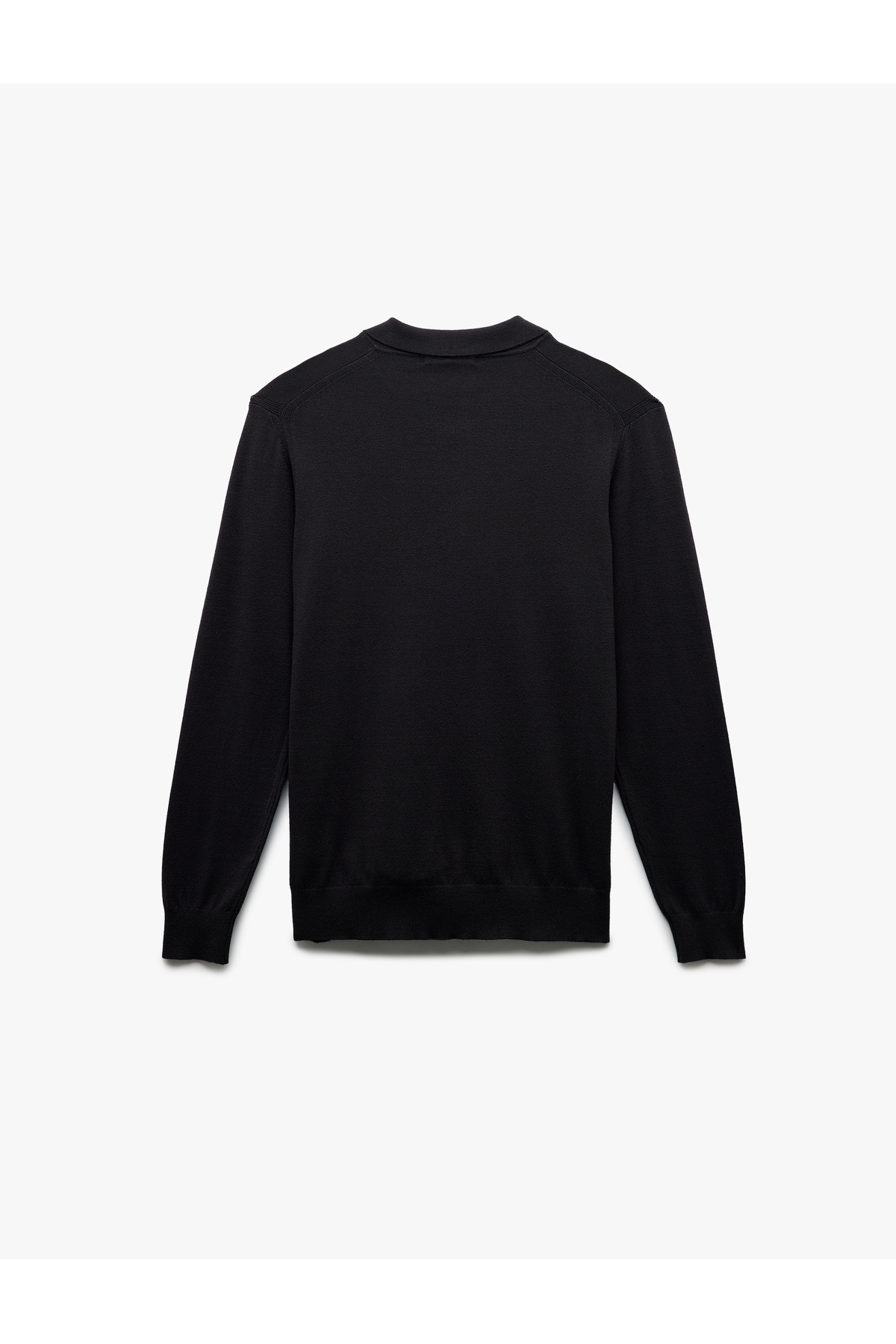 ژاکت بافتنی یقه پولو دکمهدار آستین بلند