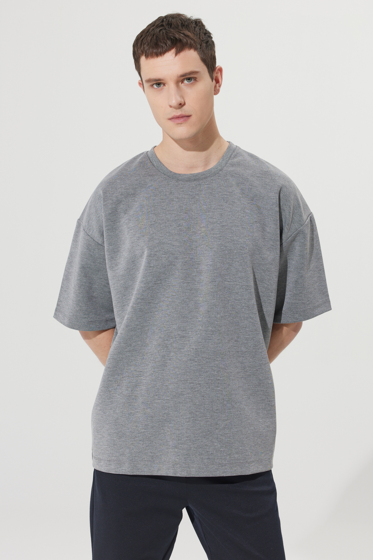 تیشرت مردانه یقه گرد گشاد خاکستری ملانژ سایز بزرگ