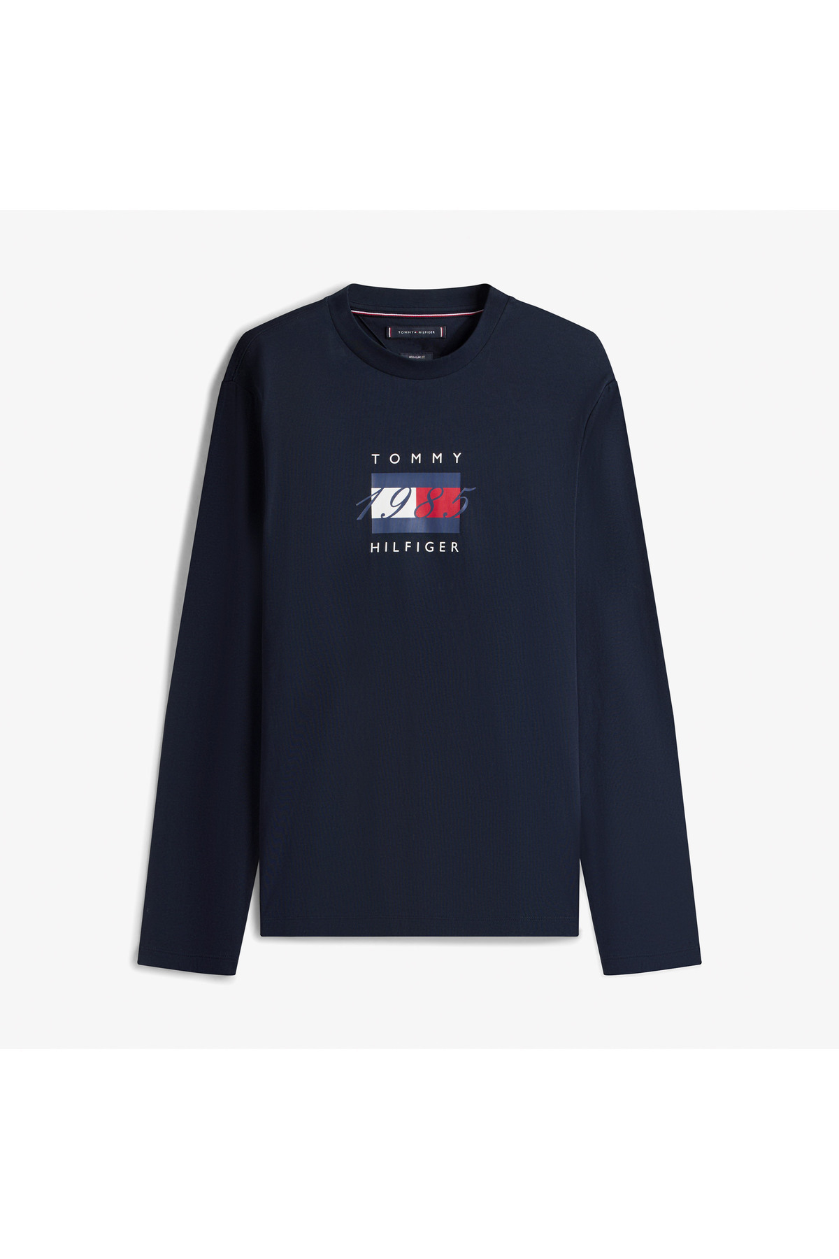 تیشرت تامی هیلفیگر آبی آستین بلند پنبه ای | | نمایندگی تامی هیلفیگر