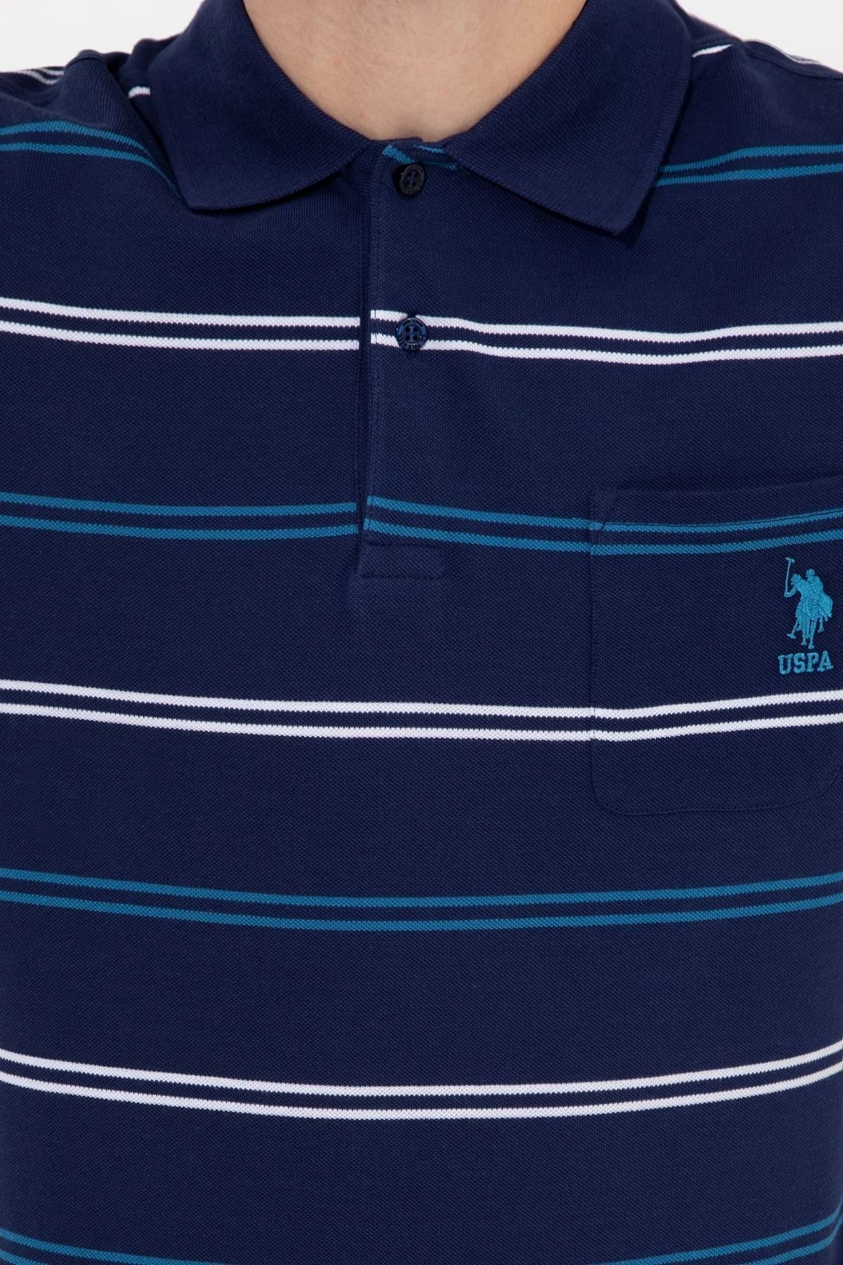 تی‌شرت یقه‌دار راه‌راه کناری یو اس پولو کد ۱۳۵۸۳۵۳ – سرمه‌ای – سایز M – St05157-navy-m