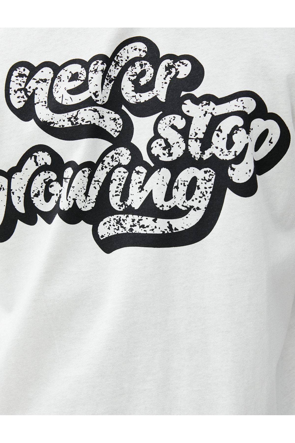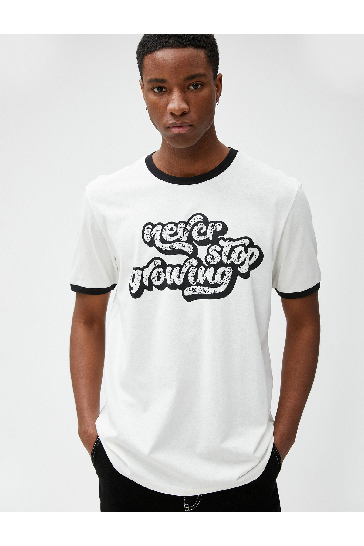 تیشرت طرحدار با طرح شعار، یقه گرد، آستین کوتاه، نخی
