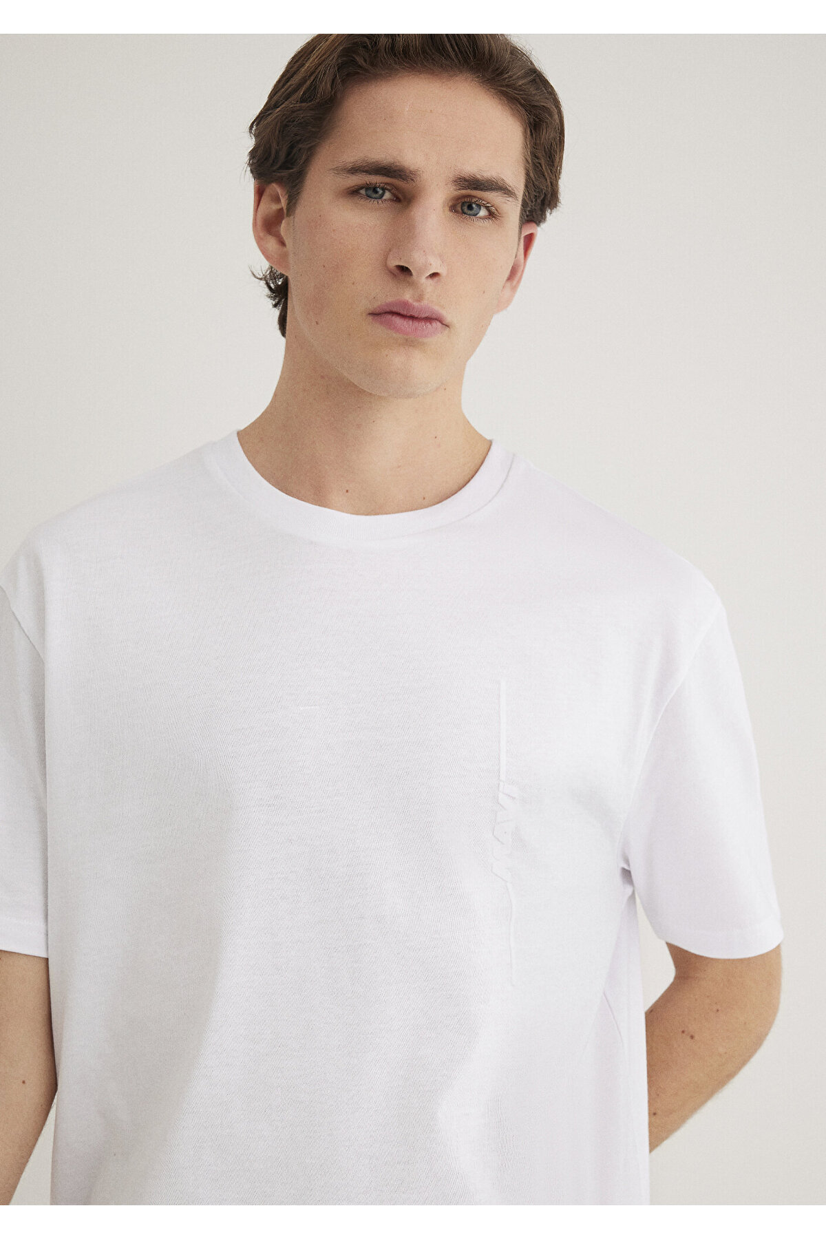 تیشرت سفید با طرح لوگو در پشت، فیت آزاد / برش آزاد 0611313-620