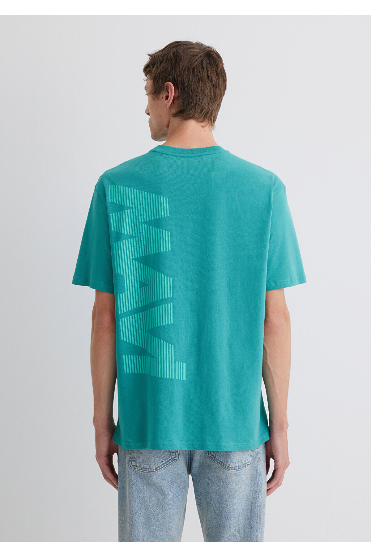 تی‌شرت سبز طرح‌دار با چاپ لوگو، گشاد / برش آزاد 0611311-71824