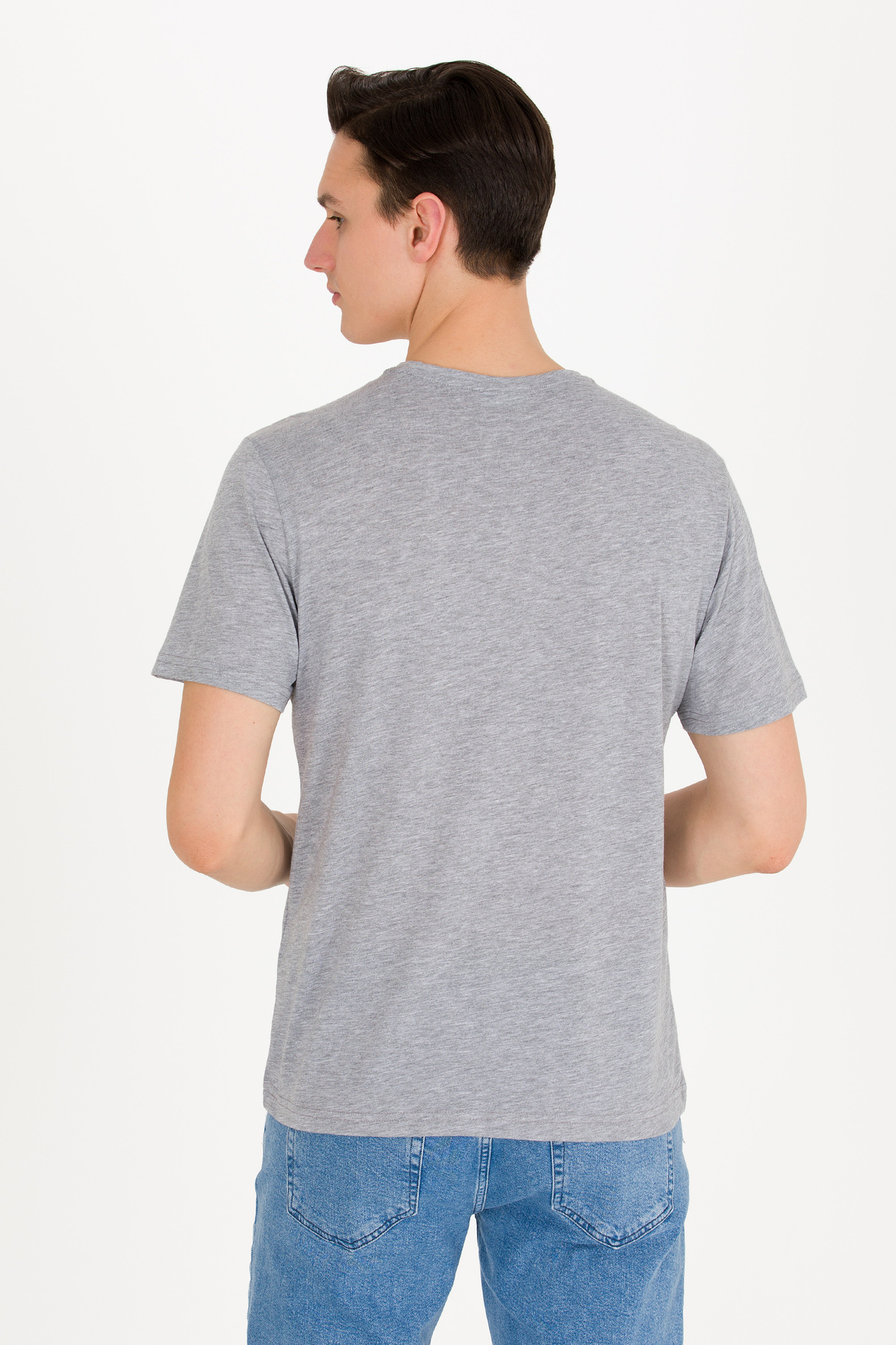 تیشرت مردانه یقه هفت طرح ملانژ خاکستری کد ۵۰۲۶۳۲۰۳-VR۰۸۶