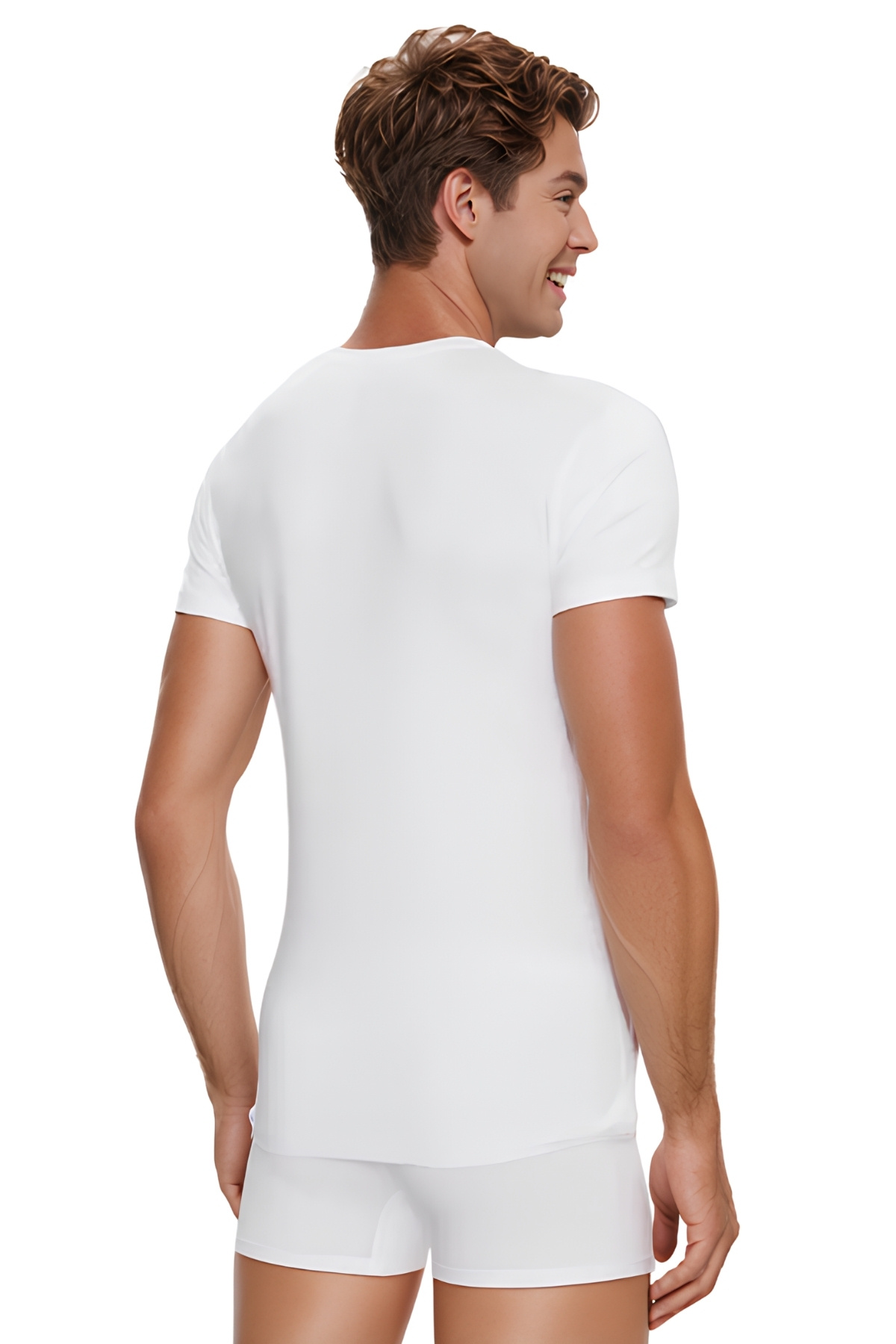تی‌شرت یقه گرد سفید مردانه، بسته ۲ عددی، جنس ۱۰۰٪ پنبه