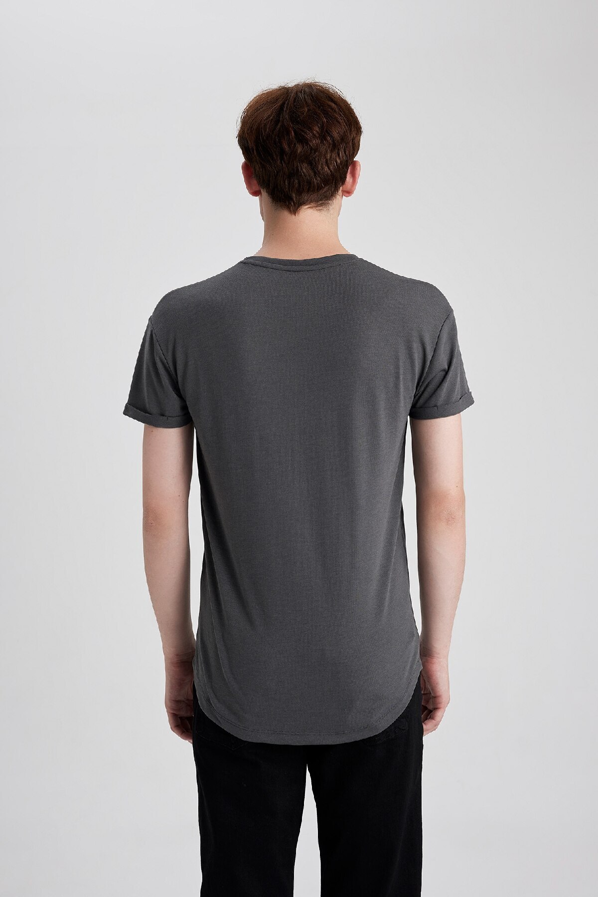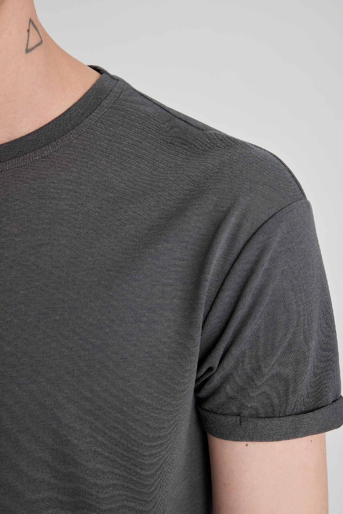 تیشرت دفاکتو خاکستری آستین استاندارد پلی استر – ویسکوز | تی شرت یقه بلند با ماهیچه های بلند می تواند برای افرادی که خواهان ظاهری متناسب هستند، با طراحی بلندتر و متناسب با بدن، جذاب باشد.