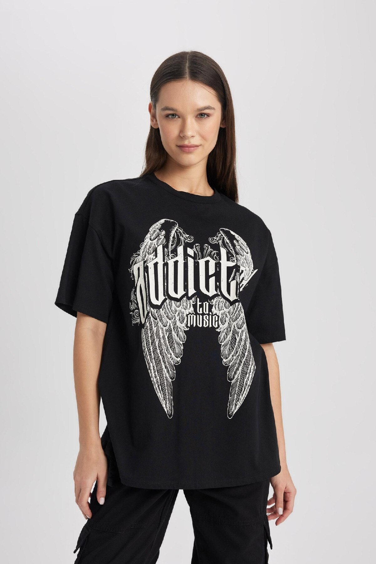 تیشرت آستین کوتاه طرحدار یقه گرد گشاد یونیسکس B6802ax24sm